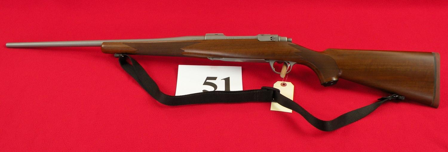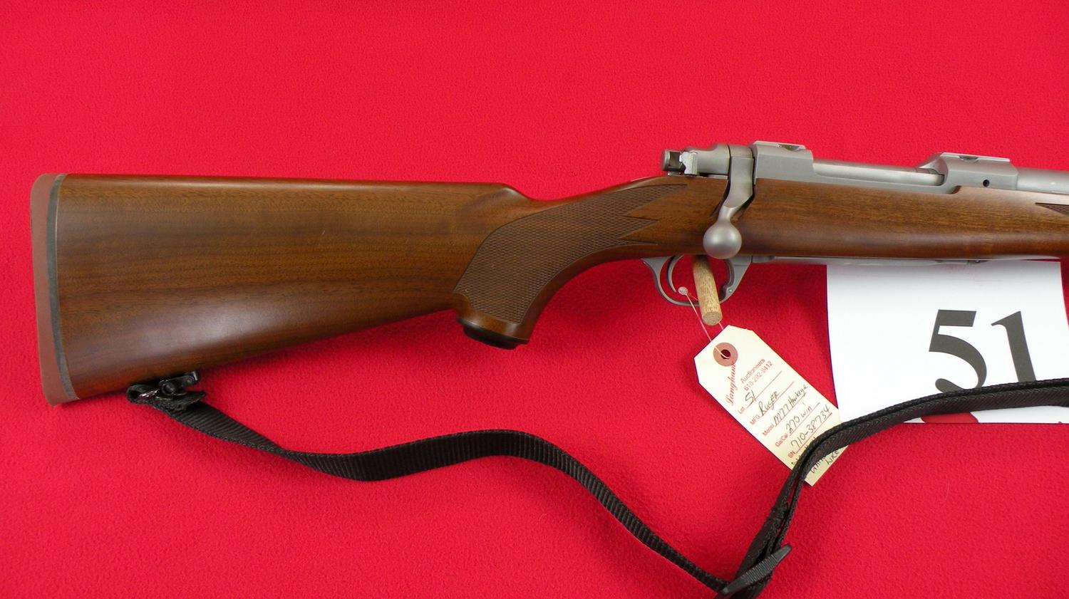 Matte Stainless Finish, Hinged Floor Plate, American Walnut Checkered Stock, Like New, SN 710-38734