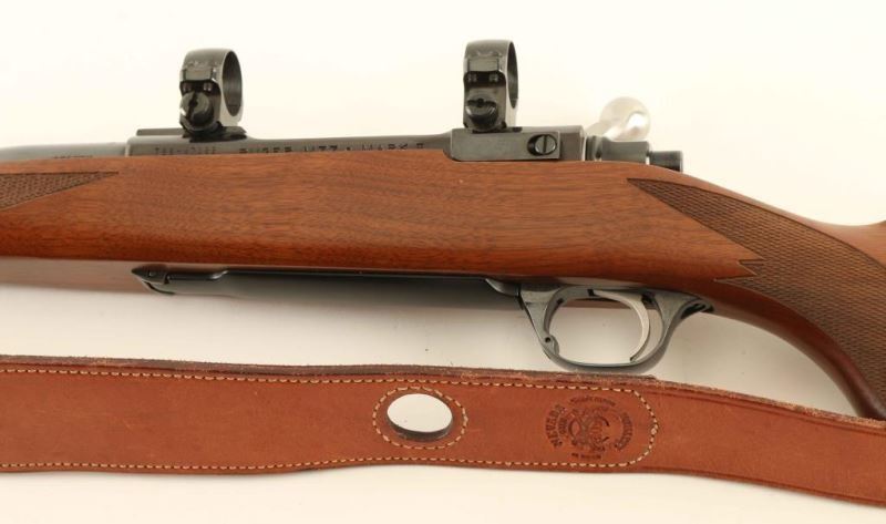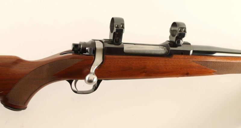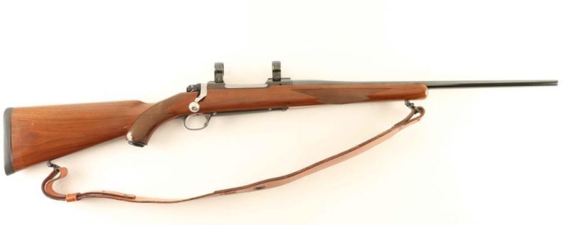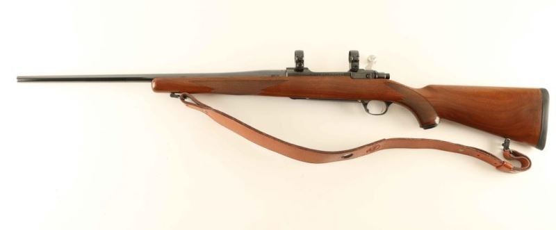 Bolt Action rifle in 270Win, 22" blued barrel, 1"Ruger scope rings, controlled round feed system, hard wood checkered stock with some light wear, rubber recoil pad, leather sling, bore bright with strong rifling. NRA Excellent Modern Firearm