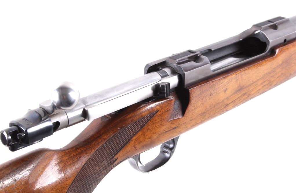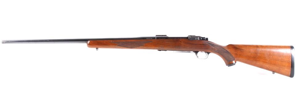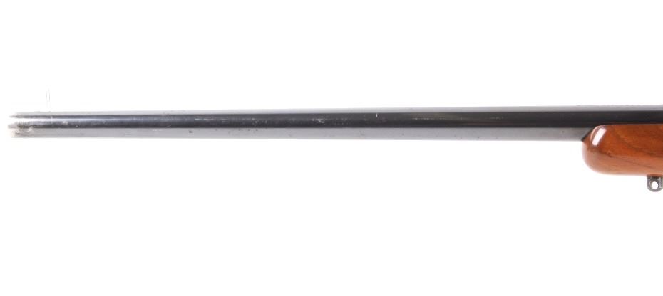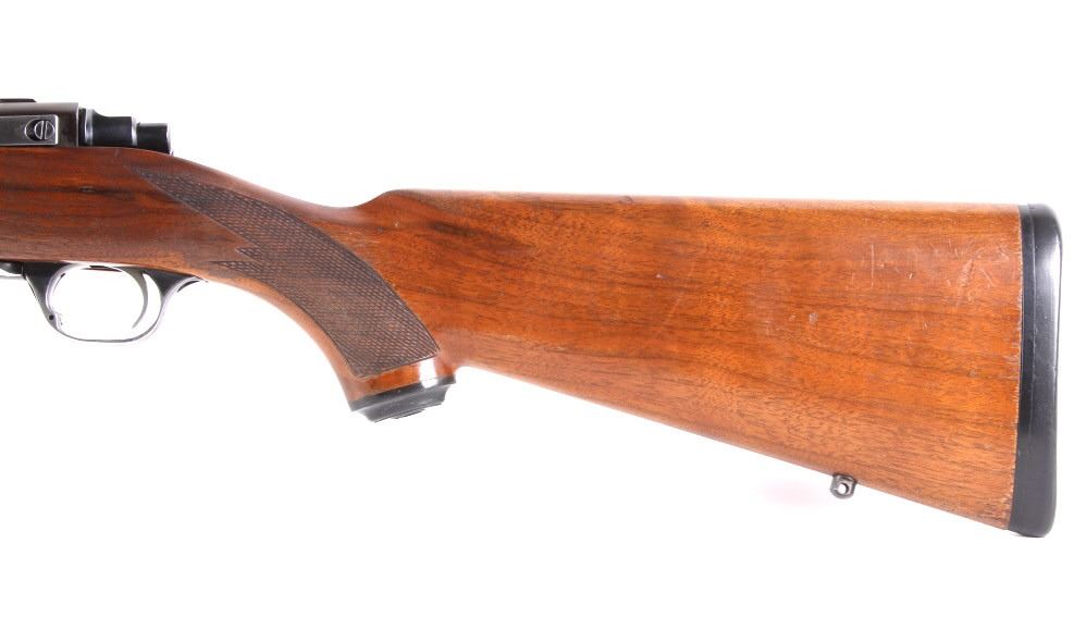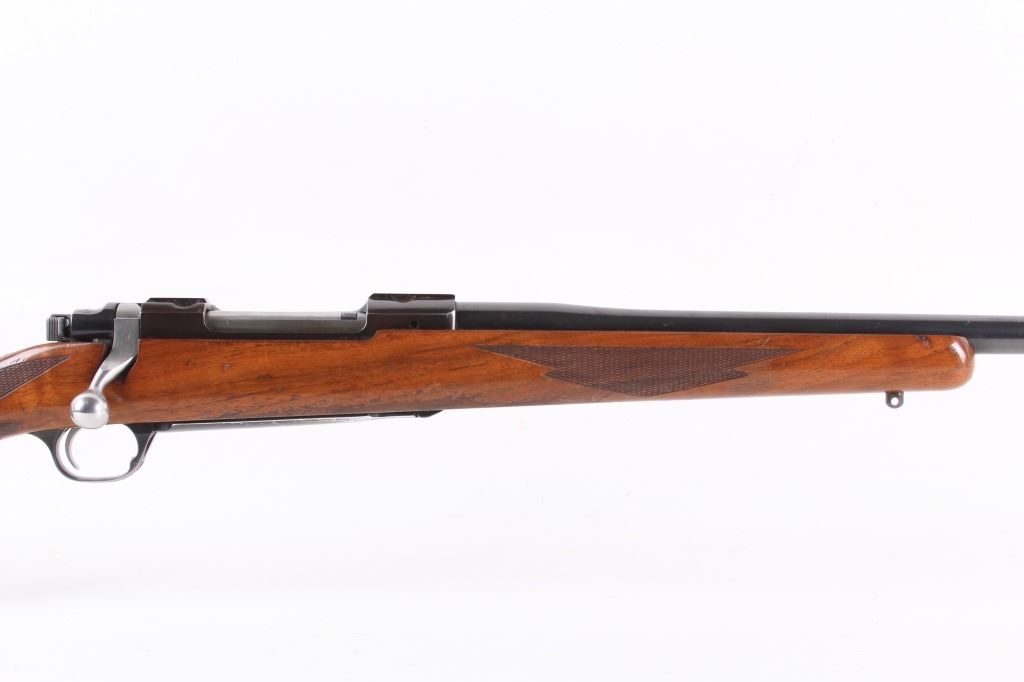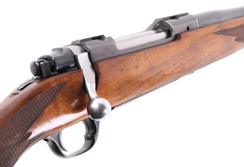 The lot features a Ruger M77 Mark II .300 Win Mag. The rifle features a blued steel finish, 24" barrel, bright nickel bolt handle and bolt, walnut straight grain stock, and skip line checkering. This rifle is in good condition, showing a good amount of bluing, with the floor plate showing the greatest loss. This rifle was manufactured in 1993. Modern rifle. FFL transfer or NICS background check required. Serial number is 781-74160. Rifle measures 44 5/8" L