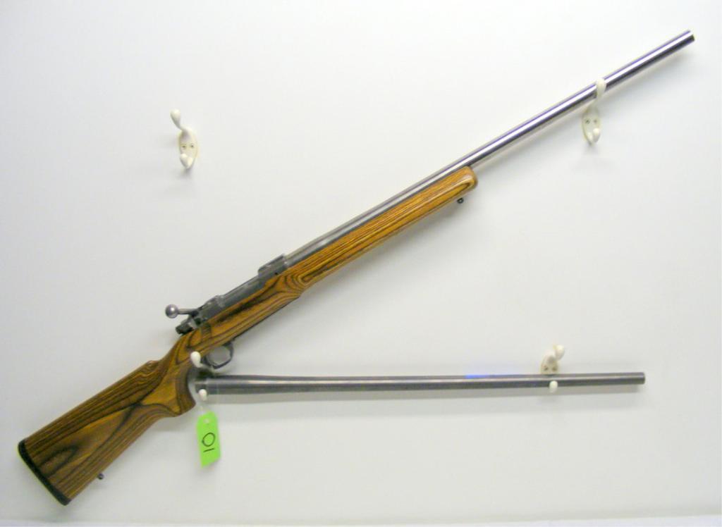 This is a very nice Ruger M77 Mark II bolt-action rifle with two barrels. The installed barrel is chambered for 22BR and the 2nd barrel is chambered in 22-250. Laminated wood stock is very nice. Both bores are excellent. Comes with Ruger scope