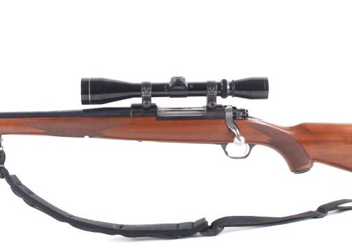 Featured in this lot we have a Ruger M77 Mark II left handed bolt action rifle chambered in .270 Win. The model 77 was first designed and introduced in 1968 with the mark II reintroduced in 1991. This rifle displays a 22" long round barrel, walnut checked stock, leupold scope, internal magazine, and left handed bolt system. The top of the barrel is marked reading "STURN, RUGER & CO. INC., SOUTHPORT. CONN. U.S.A." with the right side of the frame reading "RUGER M77 MARK II .270 WIN". with the serial number. Mechanically the rifle shows smooth bolt operation with the left handed action and a crisp trigger. The stock displays crisp checkered designs on the fore grip and on the pistol grip. The rifle is in good condition overall with some wear due to handling. The rifle weighs 8lbs 10oz. Serial Number: 786-12048. This is a modern firearm and requires a FFL transfer or NICS background check.