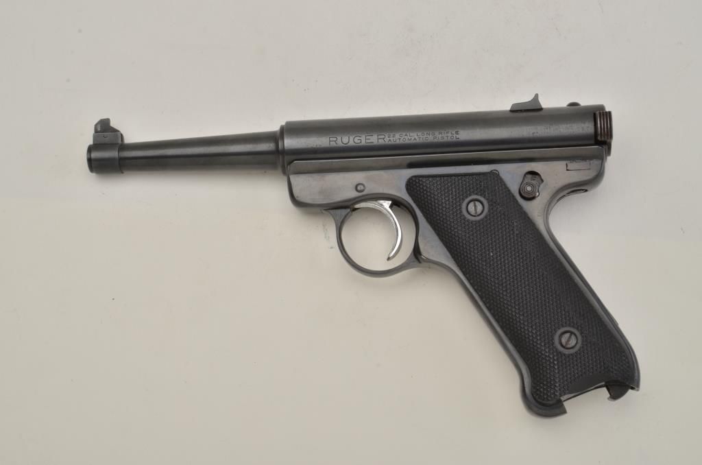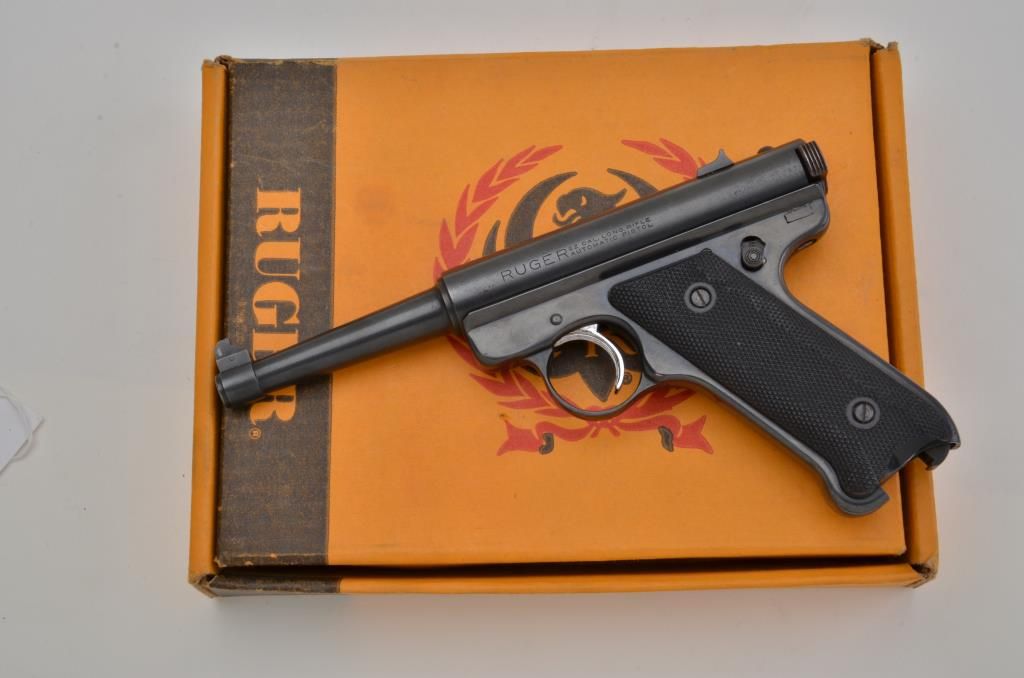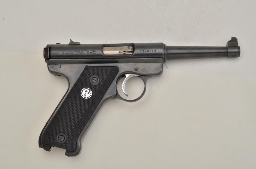 Ruger MK I semi-auto pistol, .22 cal., #12-09923; in very good used condition; 85-95% overall; normal wear and use; stored in P-85 box (incorrect). Est.: $125-$250.