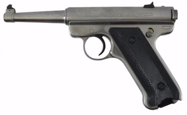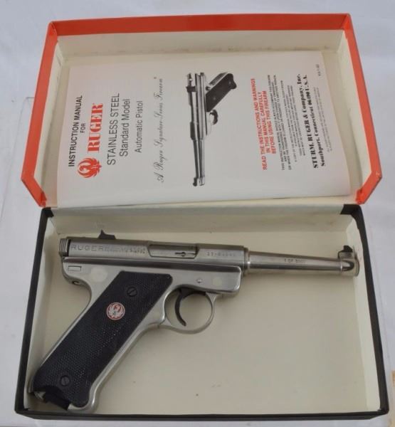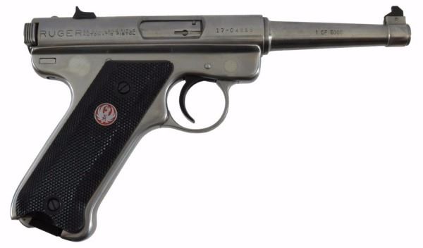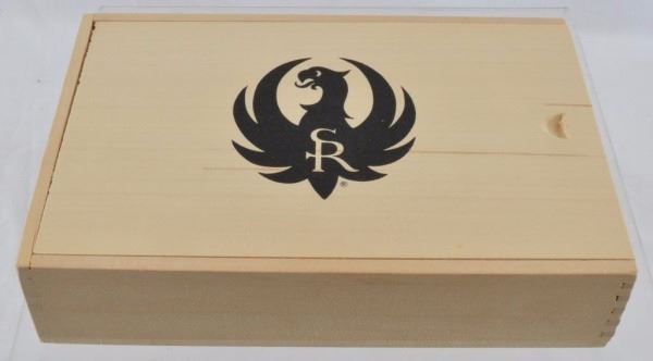 * Pistol. 4.75". Black Plastic; Checkered. Fixed Sights; Wooden Salt Fish Box. '1 of 5000' on Barrel; 'Wm. B. Ruger' Signature on Chamber. New in Box. Stainless Steel; Tapered Barrel.