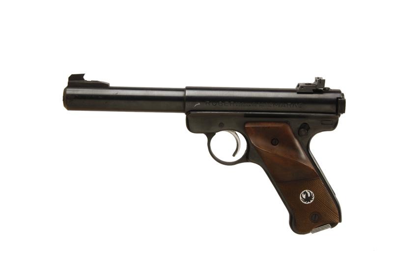 Ruger Mark I Cal .22LR SN:334379 Earlier semi-auto target pistol from about 1965. Blued finish, wood