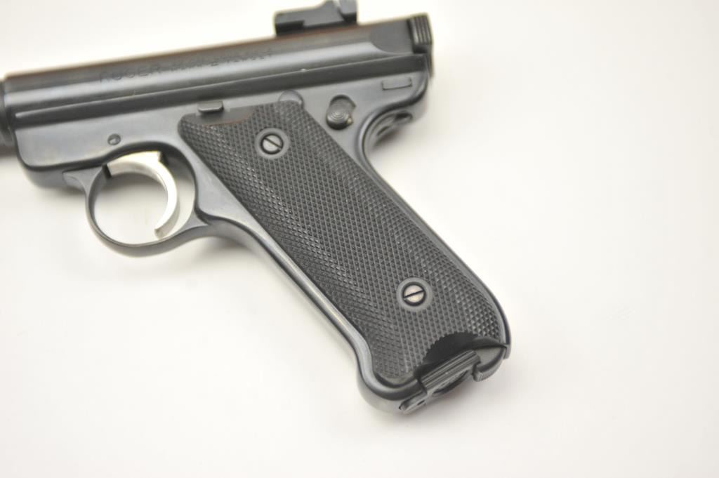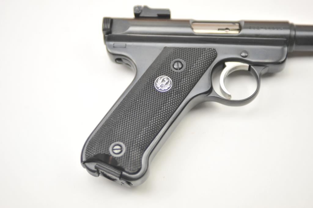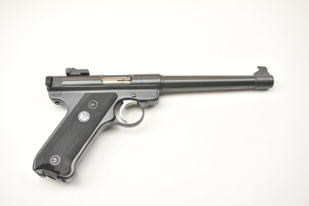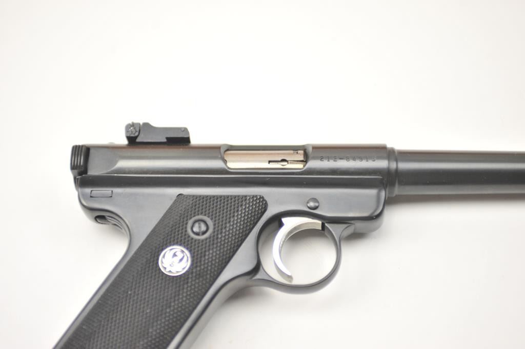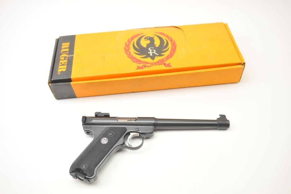 Ruger Mark II Semi-Auto Target Pistol in .22 L.R. caliber with a 6 7/8” barrel, adjustable sights and in original box with instructions, S/N 212-84915. Fine to excellent used condition. 98%-99% overall.(Modern/PPT) Est.: $250-$500