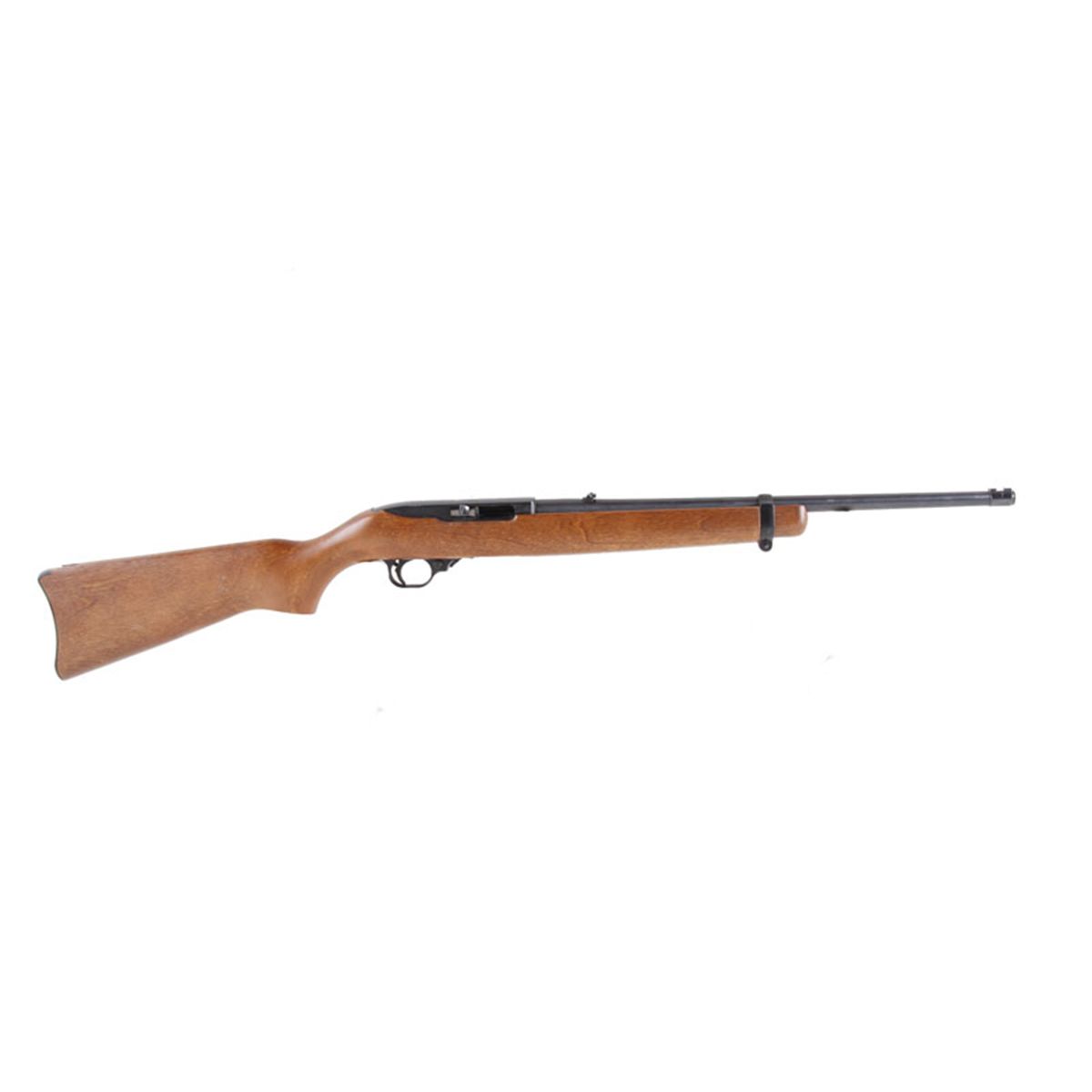 Ruger Mdl 10/22 Cal .22LR SN:230-22435 Standard configuration semi-auto sporting rifle in .22LR caliber. Blued finish, smooth wood semi-pistol grip stock with steel curved butt plate, 18" barrel with adjustable flip up sight, receiver tapped for scope,Standard configuration semi-auto sporting rifle in .22LR caliber. Blued finish, smooth wood semi-pistol grip stock with steel curved butt plate, 18" barrel with adjustable flip up sight, receiver tapped for scope, goodbore and action. Condition: Excellent with some use. Top of receiver marred from use of scope mount. (1)10rnd magazine.
