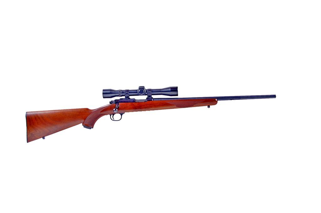Ruger Mdl 77/22 Cal .22LR SN:700-32108 Very nice bolt action Ruger hunting rifle with rotary magazine. Blued finish, checkered walnut pistol grip stock with hard rubber butt plate, 20" barrel with no iron sights and a Weaver K4-1 scope mounted on the recVery nice bolt action Ruger hunting rifle with rotary magazine. Blued finish, checkered walnut pistol grip stock with hard rubber butt plate, 20" barrel with no iron sights and a Weaver K4-1 scope mounted on the receiver with Ruger mounts,sling studs installed but no sling or swivels Good bore and action. 1 magazine. Condition: Excellent with little sign of use.