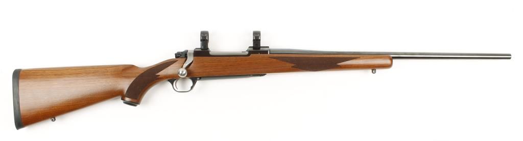 Bolt action sporting rifle with 22" barrel. Blued finish, checkered pistol grip wood stock, rubber recoil pad, no sights and scope rings included. Excellent bore and action. Condition: Very good showing very light handling.