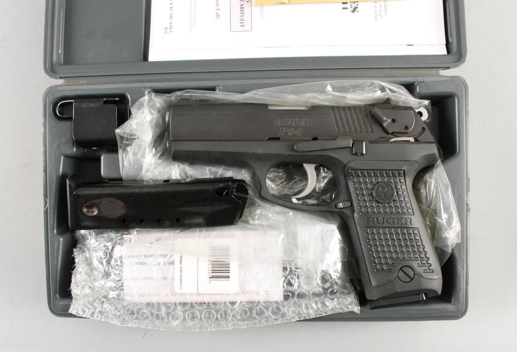 Ruger Mdl P94 Cal .40 SN:341-65435Double action semi auto pistol, 4" barrel, black steel slide, black alloy frame, checkered plastic grip panels, 3 dot sight, ambidextrous decocking lever, good bore and action. Includes box and manual. 2 magsCondition: Excellent