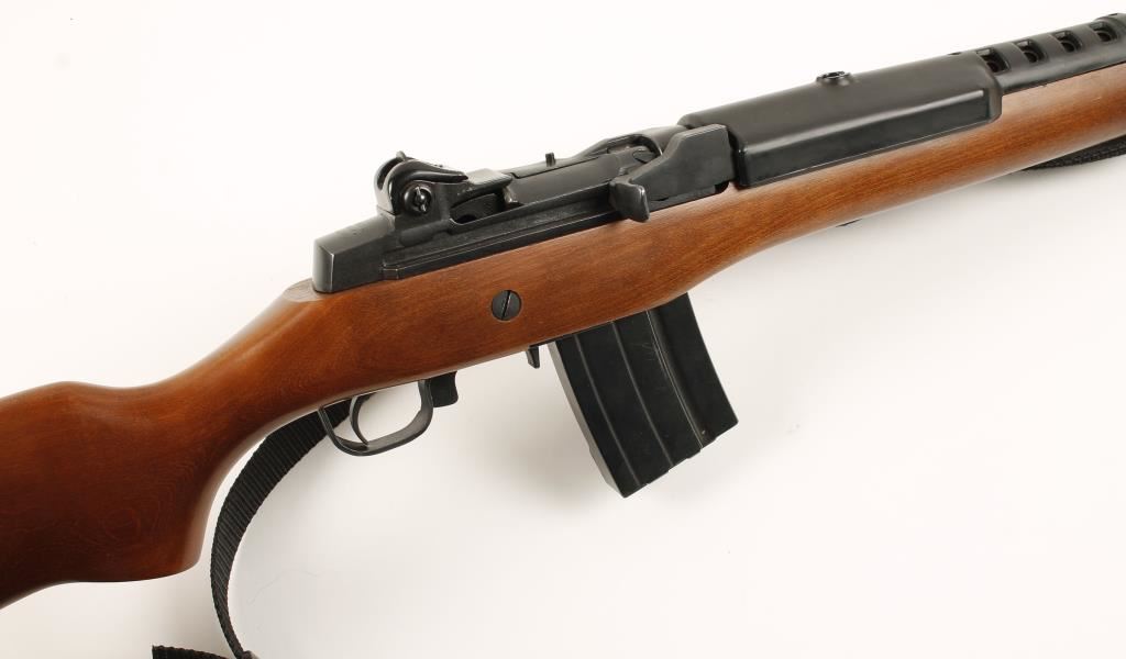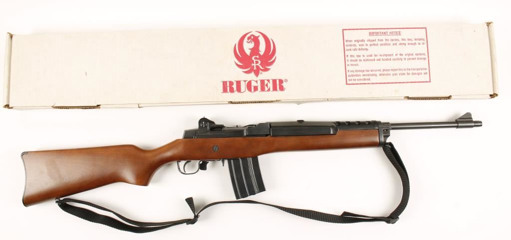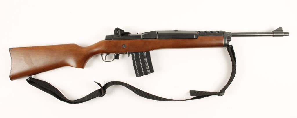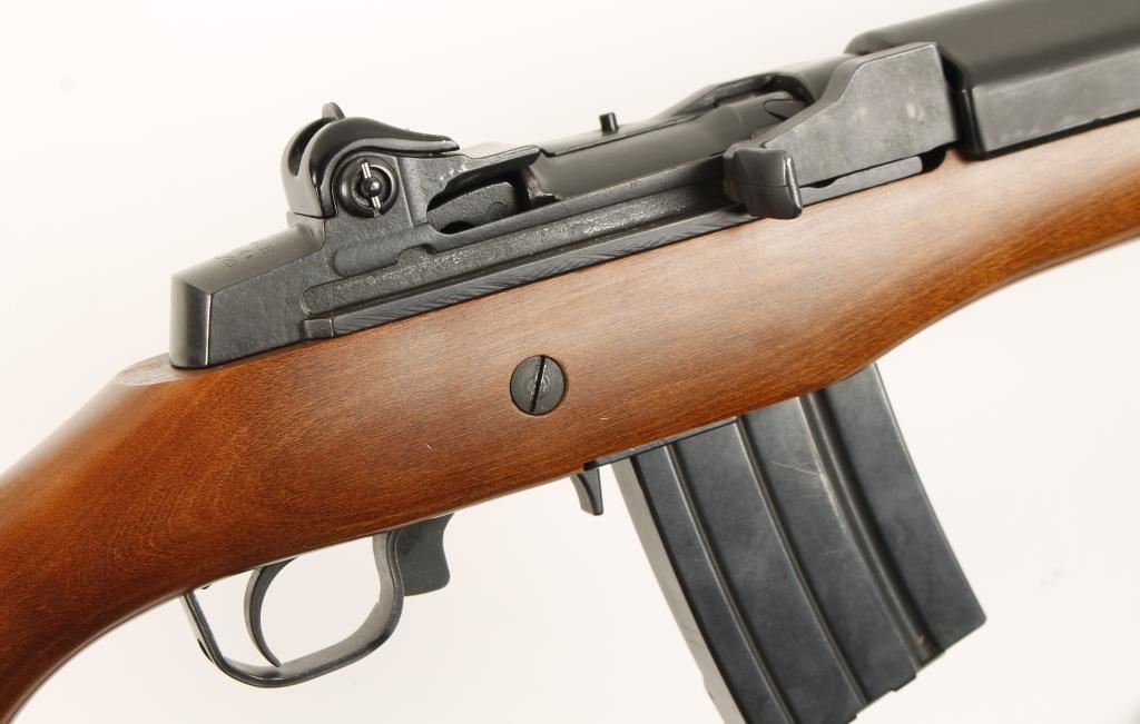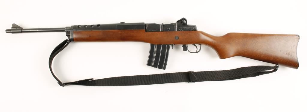 Blued semi-automatic carbine with an 18" barrel. This has light edge wear to the metal. Rear sight adjustable for windage and elevation. The birch stock has small dings from storage. The barrel is immaculate. This gun has not been fired much. Includes box numbered to the firearm and one 20-round magazine. Condition is excellent. *Modern Firearm*