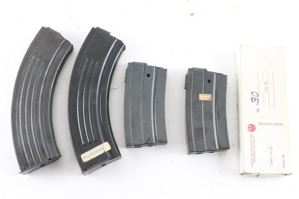 Total of 5, including 2x 20 rd Min-14 & 1x 30 rd Mini-14 by Ruger, 2x aftermarket 30 rd Mini-Thirty mags.