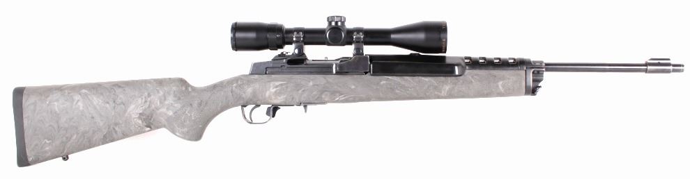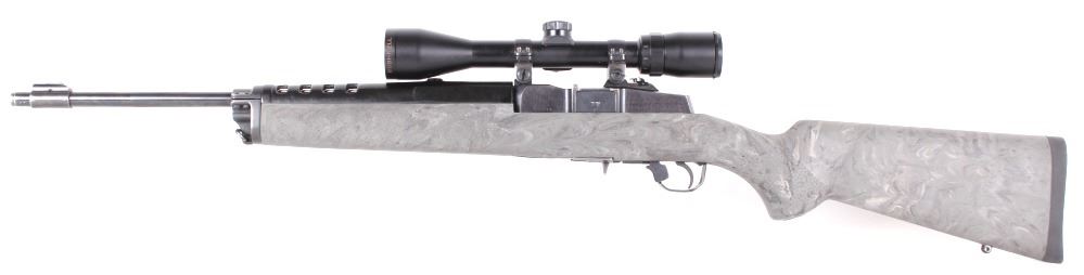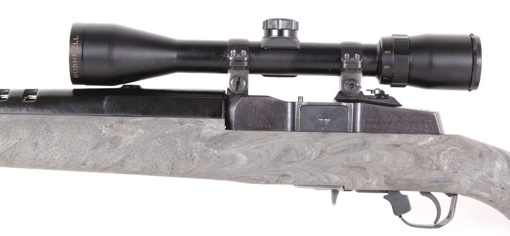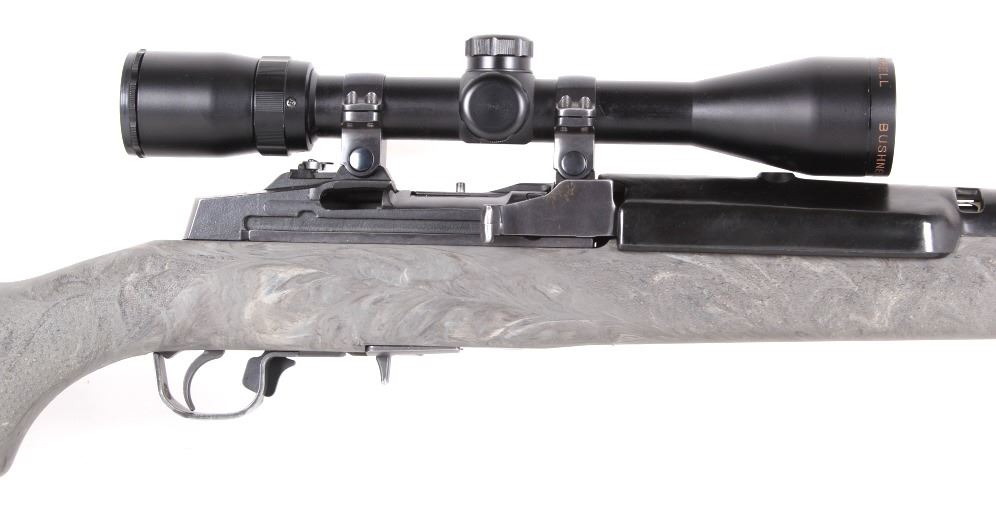 Available for sale is a Ruger Mini-14 Pre-Ban Ranch Rifle in .223 with a Bushnell 3x9 variable scope. This rifle features a Hogue rubber stock, 18 1/2" barrel, 5 round magazine, Bushnell scope, iron sights, and a blue steel finish. The Mini-14 was first introduced in 1973 by Sturm, Ruger & Co. The name Mini-14 was coined because it resembles a smaller version of the military M14 rifle. Designed by L. James Sullivan and William B. Ruger. This rifle is in good condition, with some signs of use. It was manufactured in early 1985. Modern rifle. FFL transfer or NICS background check required. Rifle measures 37 7/8" L. Serial number is 187-27799