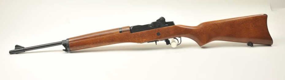 ): Ruger Mini-14 Ranch semi-automatic rifle, .223 caliber, Serial #180-51875. The rifle is in nearly excellent overall condition with an 18” barrel. The rifle retains approximately 95-98% original blue finishwith handling marks. The smooth wood stock is in excellent condition showing little use. The bore is good and the action is crisp on this lightly used Mini-14. Est.: $500-$1,000. (Modern).