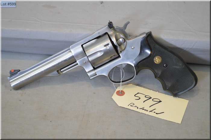 Ruger Mod Red Hawk .357 Mag cal 6 shot Revolver w/140 mm bbl [ stainless finish, w/adjustable rear sight, slight cylinder ring, Pachmayr Gripper checkered rubber grips, appears v-good ] Ser # 50123689 * Restricted Handgun Cert # 16658974
