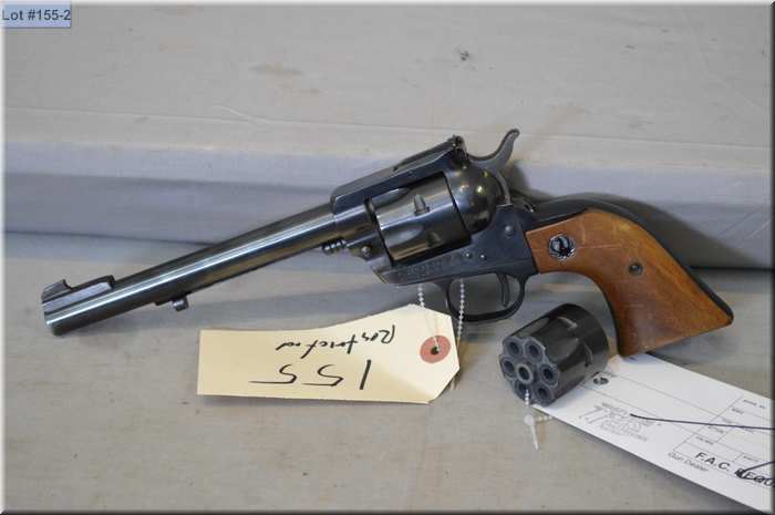 Ruger Mod Single Six .22 LR cal & .22 Mag cal 6 shot Revolver w/ 165 mm bbl [ blued finish, adjustable rear sight, slight cylinder ring to extra cylinder, walnut Ruger Insignia grips , few marks ] Ser # 564916 Restricted Handgun Cert # 5696974