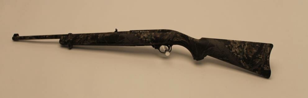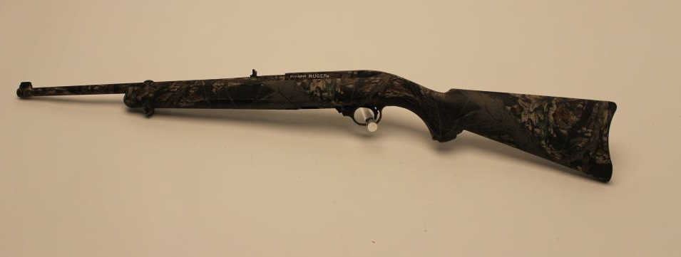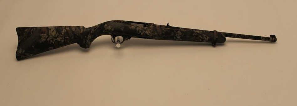 Ruger Model 10/22 semi-automatic carbine, .22LR caliber, 18.5” barrel, camo style wrapping to metal and stock, S/N 351-42940, in overall very good + condition with a very good + bore, crisp action, very good to finestock. (Modern/No PPT). Est.: $150-$300.