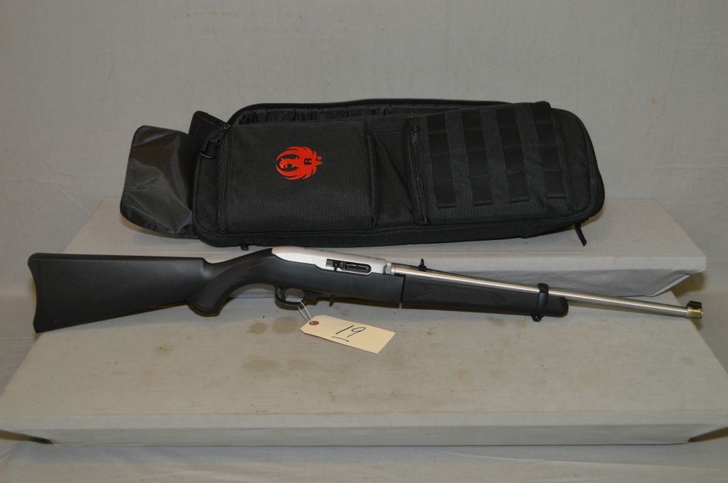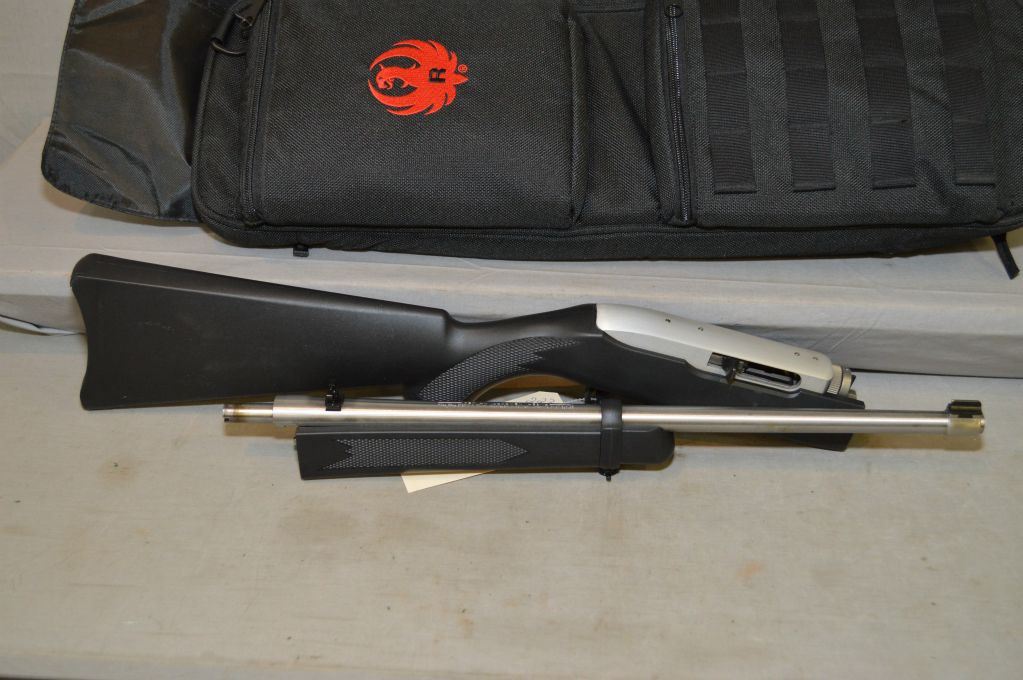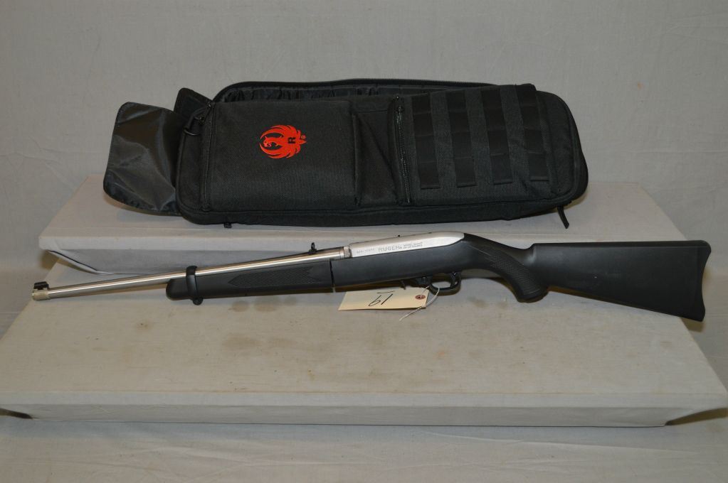 Ruger Model 1022 .22 LR Cal Semi Auto Take Down Carbine w/ 18 1/2" bbl [ appears as new, test fired, in original black nylon Ruger case, stainless finish, black composite stock, w/ lock, etc. ] Ser # 821-57493