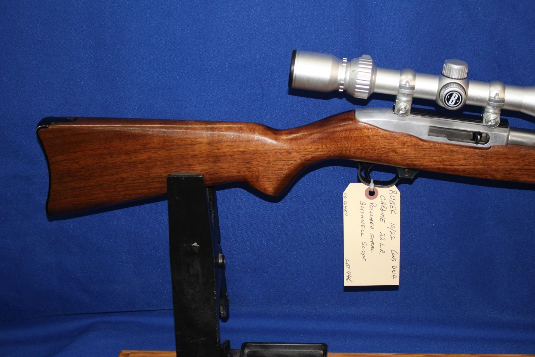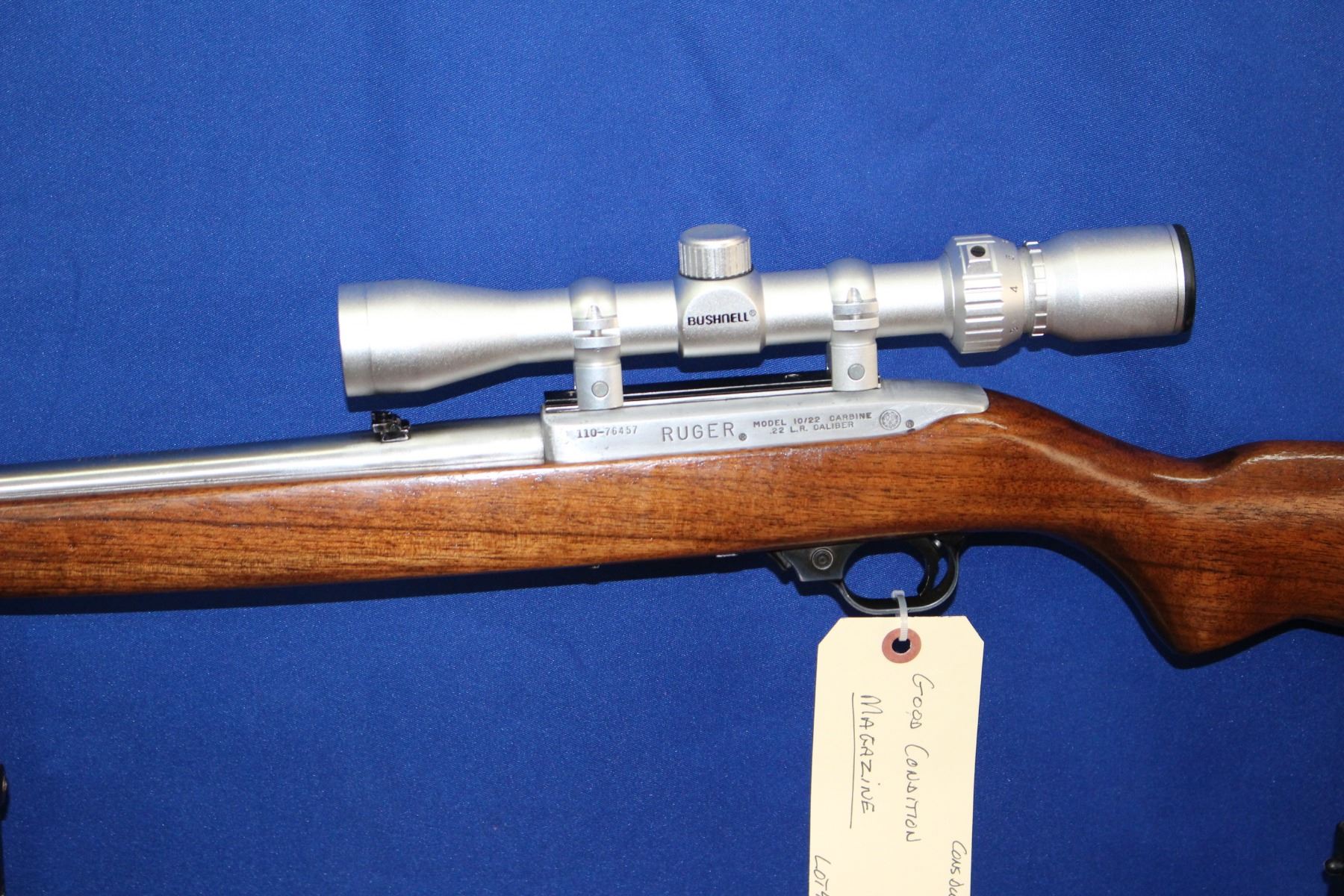 22 LR; Carbine; Polished Steel Barrel & Action; w/Bushnell Scope; Magazine; Good Condition; S/N 110-76457