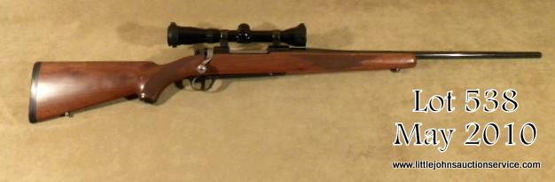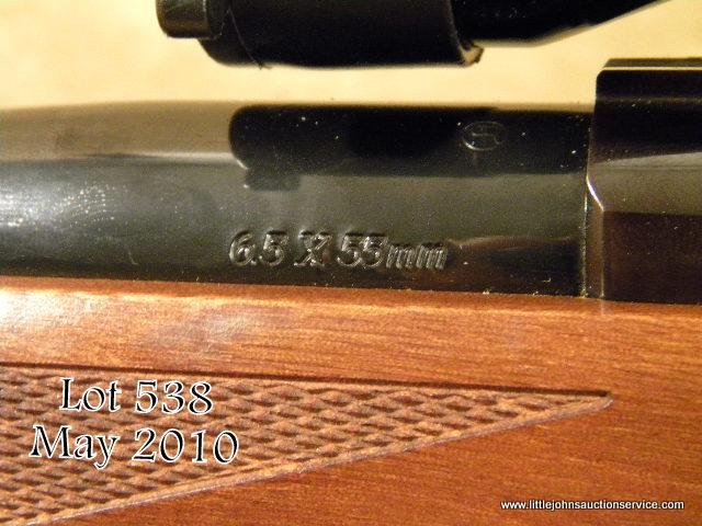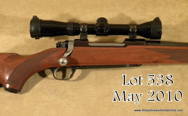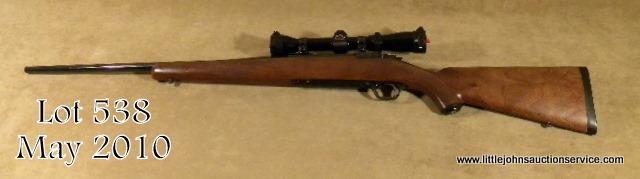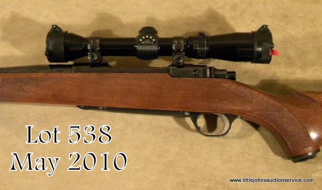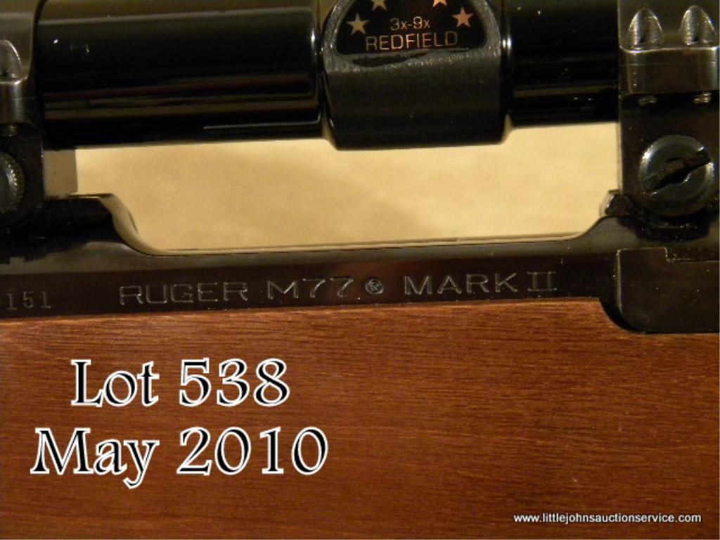 Ruger Model 77 Mark II bolt-action rifle, 6.5 x 55mm cal., 22” round barrel, blue finish, checkered wood stock, sling swivel eyelets, Ruger hard rubber butt pad, #781-99151. This rifle is in overall excellent condition showing approx. 99%original blue finish, crisp action, fine bore, excellent wood stock with some scattered small nicks and mars from carry and storage; mounted with a Redfield 3X -9X scope with excellent optics. Est.: $250-$350.
