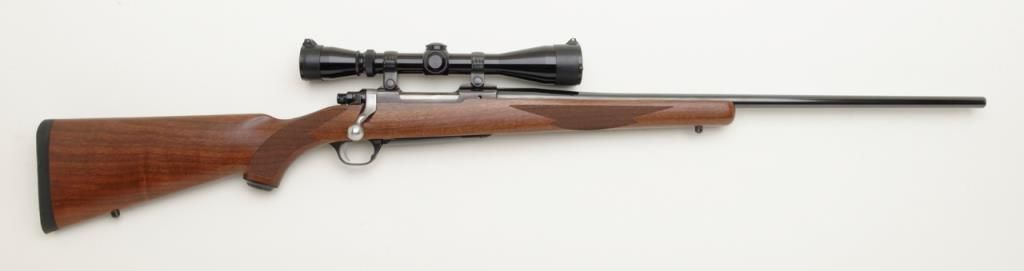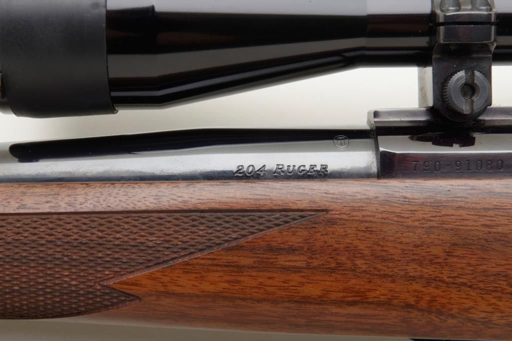 Ruger Model 77 Mark II bolt action sporting rifle in .204 Ruger caliber mounted with Leupold 3x9 scope on detachable rail mounts. The rifle remains in fine to excellent condition with 99% plus original finish with slight handling and possible minor use only. Serial number 790 – 9108D. Est.: $350-$700