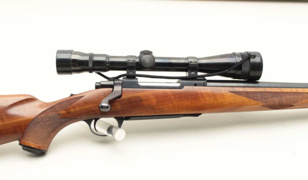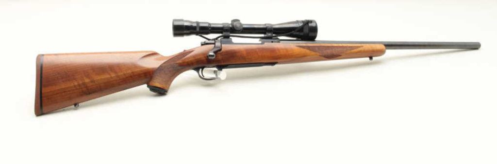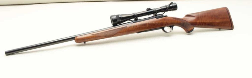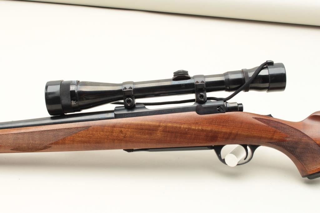 with Weaver V-12 scope on factory style mount and heavy “Bull” factory barrel, S/N 70-18406. Fine to near excellent used condition. 97%-99% showing just minor handling and slight use. (Modern) Est.: $350-$700