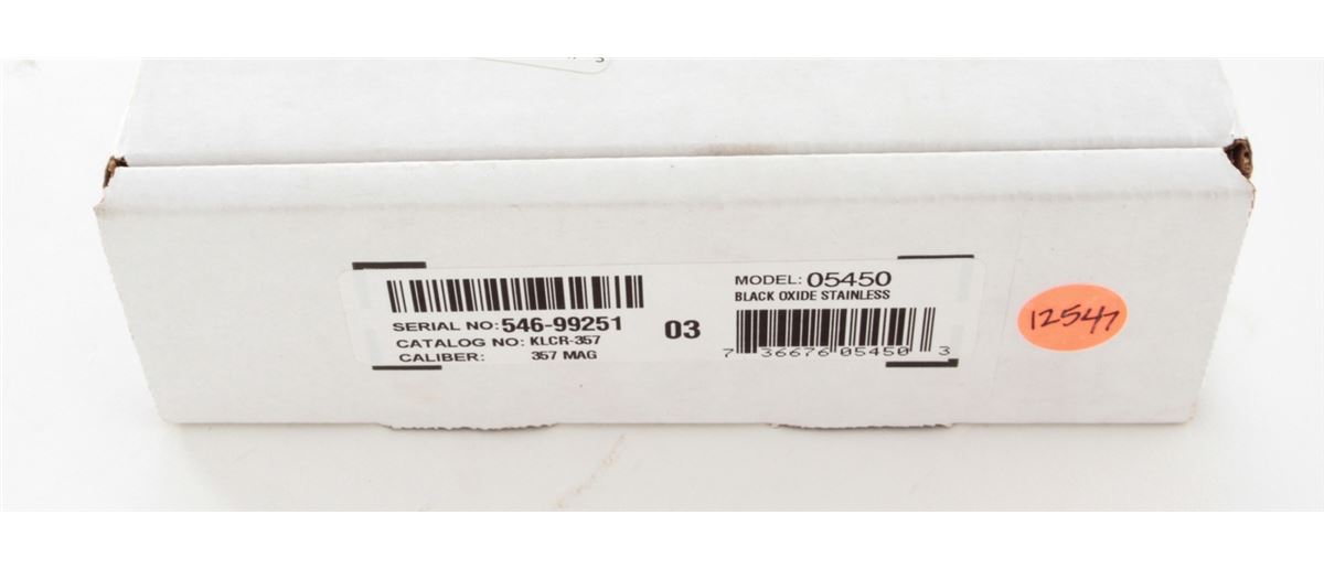Ruger Model LCR Double Action Revolver, #546-99251, .357 mag. cal., 1-7/8'' barrel, matte black finish, Ruger Hogue Tamer fingergrooved hard rubber grips, integral rear sight, ramped front sight, in original box with matching end label, Ruger soft case, gun lock, and owner's manual. Condition is excellent, remaining new and unfired. Cylinder with light drag line. Retails @ $559.95. Est.: $300-$500. (Modern) (Field Time)