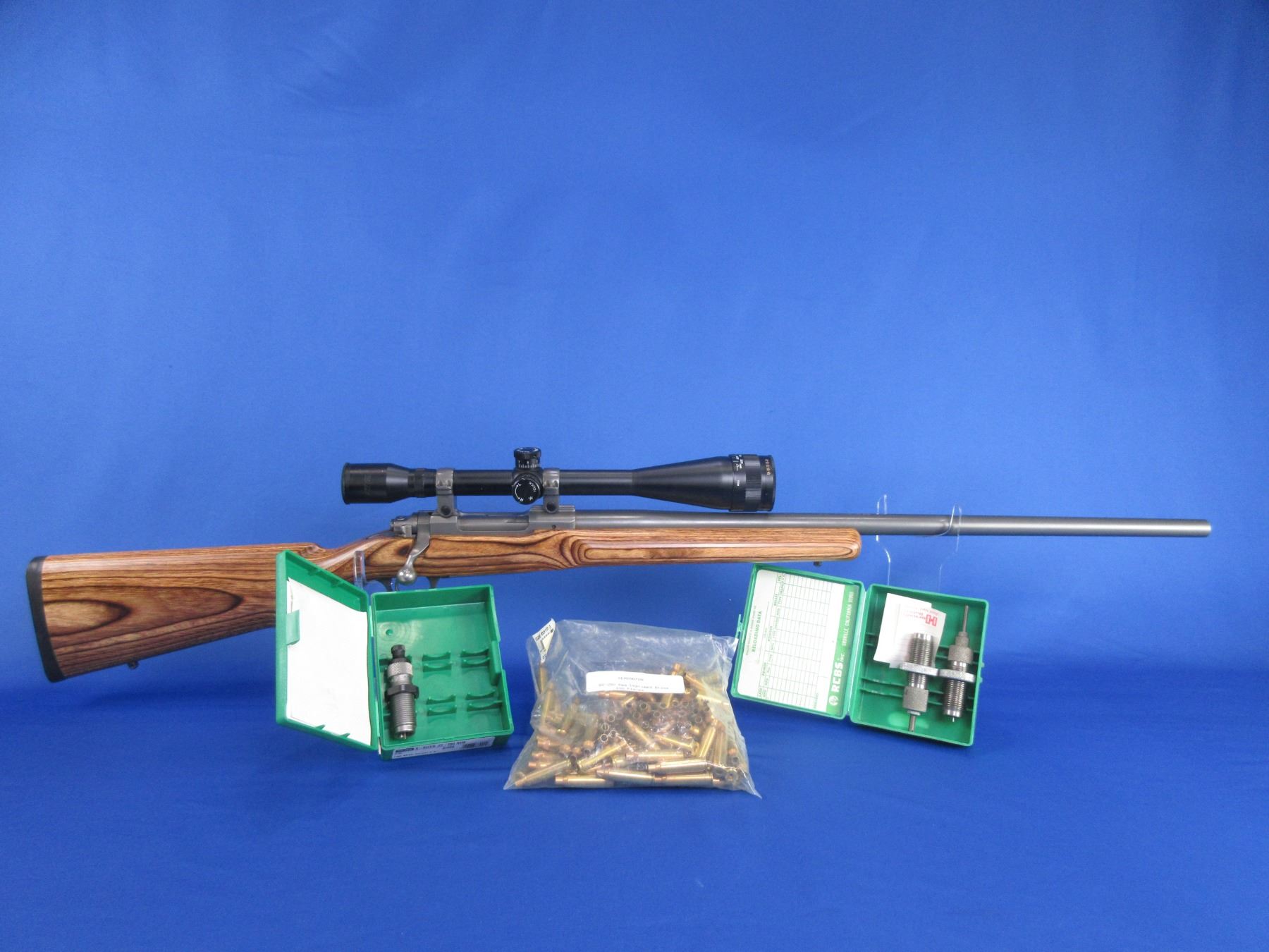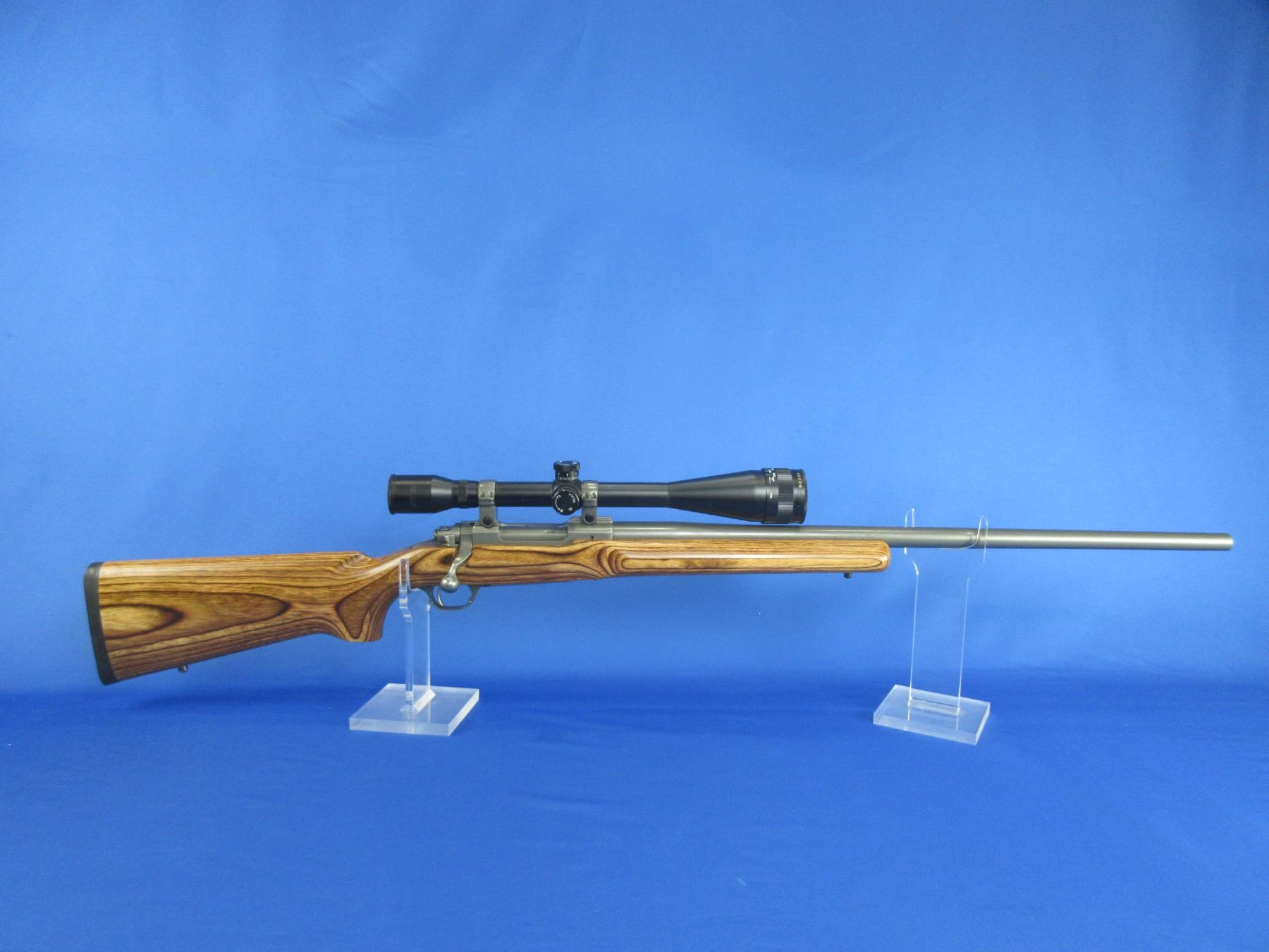 Ruger Model M77 Mark II Bolt Action Rifle- .22-250- 26" Bull Barrel- BSA Platinum Scope- Stainless Excellent Condition- Fancy Stock- Trigger Job- #785-58760- Dies and Brass Included