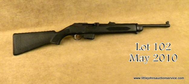 Ruger Model PC9 carbine, 9mm cal., 16-1/2” barrel, mat finish, synthetic stock, no magazine, #470-01139. This carbine is in overall very good condition showing the majority of its mat finish on the barrel with some scattered scratches fromstorage; very good bore, crisp action, sharp markings; stock is in excellent condition. Est.: $250-$350.