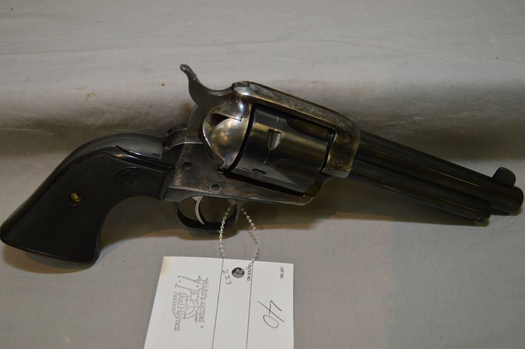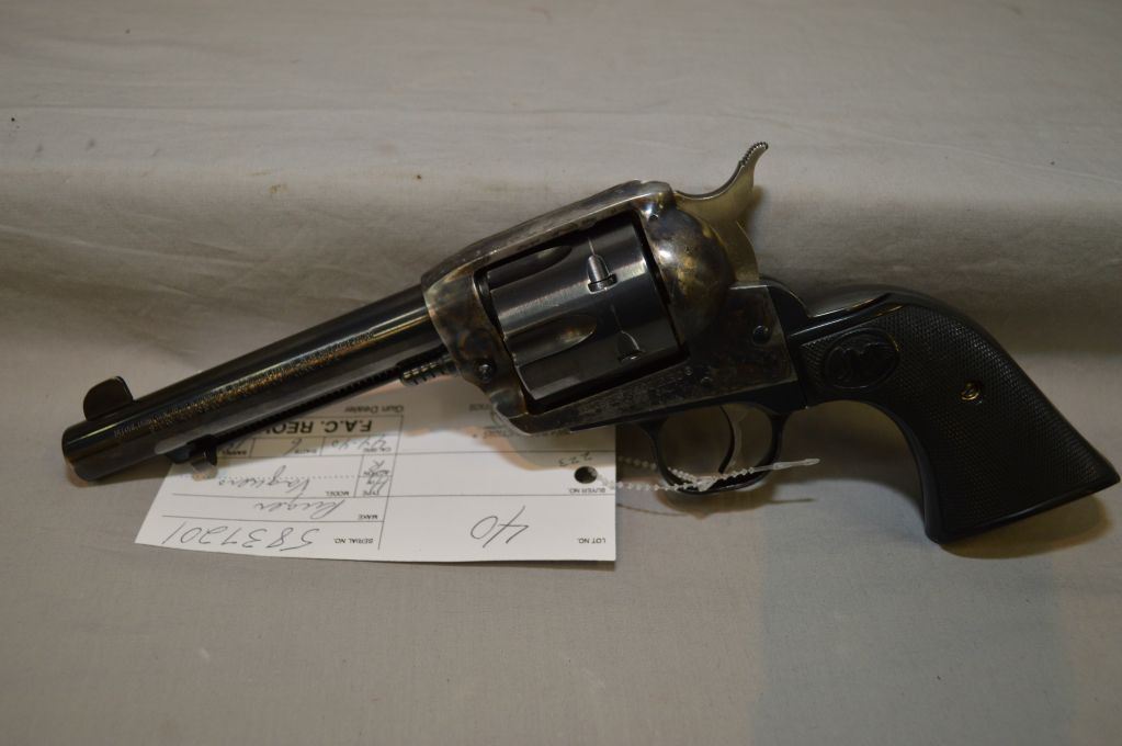 Ruger Model Vaquero .44 - 40 Win cal 6 Shot Single Action Revolver w/ 140 mm bbl [ blued finish, fixed sights, some muzzle wear & cylinder ring, case colored receiver, checkered black grips w/eagle insignia ] Ser # 5837201 Restricted Handgun Cert # 8987965