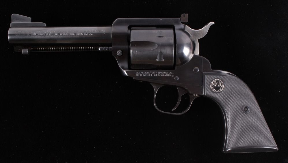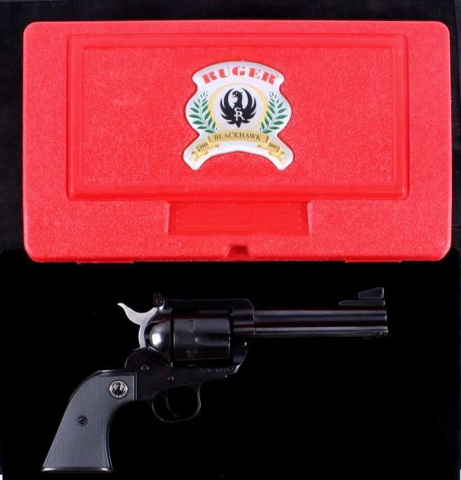 This is a Sturm, Ruger & Company New Model Blackhawk .357 Magnum Caliber 50th anniversary of the Blackhawk limited edition. The six shot single shot revolver is in brand new never shot condition in the box (shows 100% of blue). Also comes with Ruger lock and keys, Ruger box, and paper work.