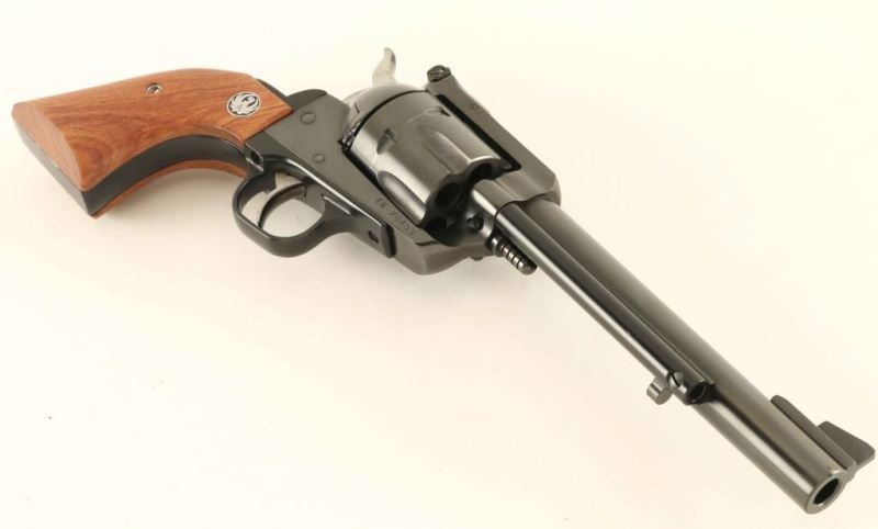 American made single action six-shot revolver chambered in .41 Magnum, manufactured circa 2004. Features a blued finish, 6 1/2" barrel, raised ramp front sight, adjustable rear sight, ejector rod, fluted cylinder, smooth wide trigger, serrated hammer spur, transfer bar safety, black anodized aluminum alloy grip frame and two-piece smooth wood grips with Ruger medallions. Revolver exhibits approximately 98%+ of it's original finish showing a light drag line on the cylinder and a few minor handling marks. Action is smooth with good lock-up, the bore is pristine and wood grips are fine. Condition is excellent. ***Modern Firearm***