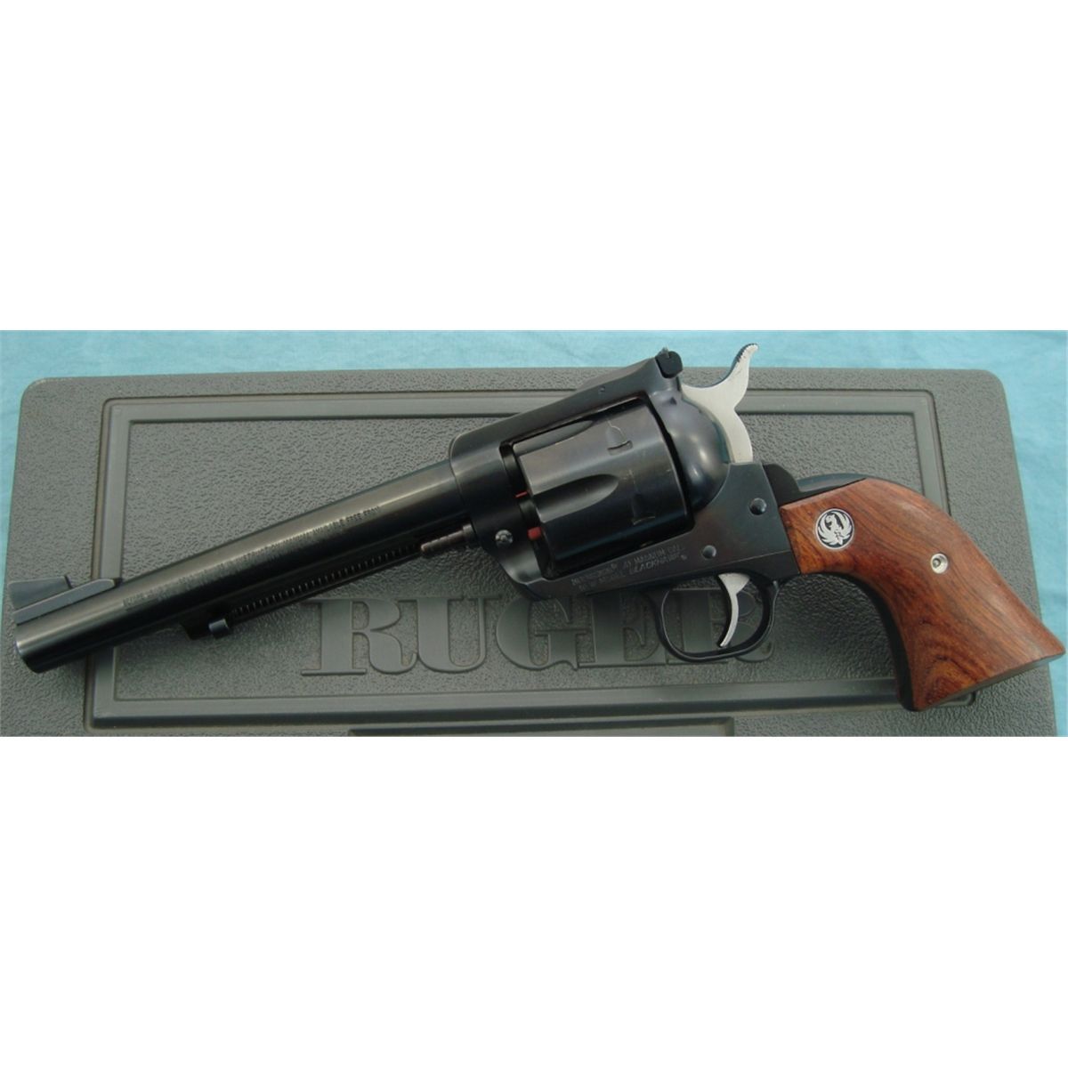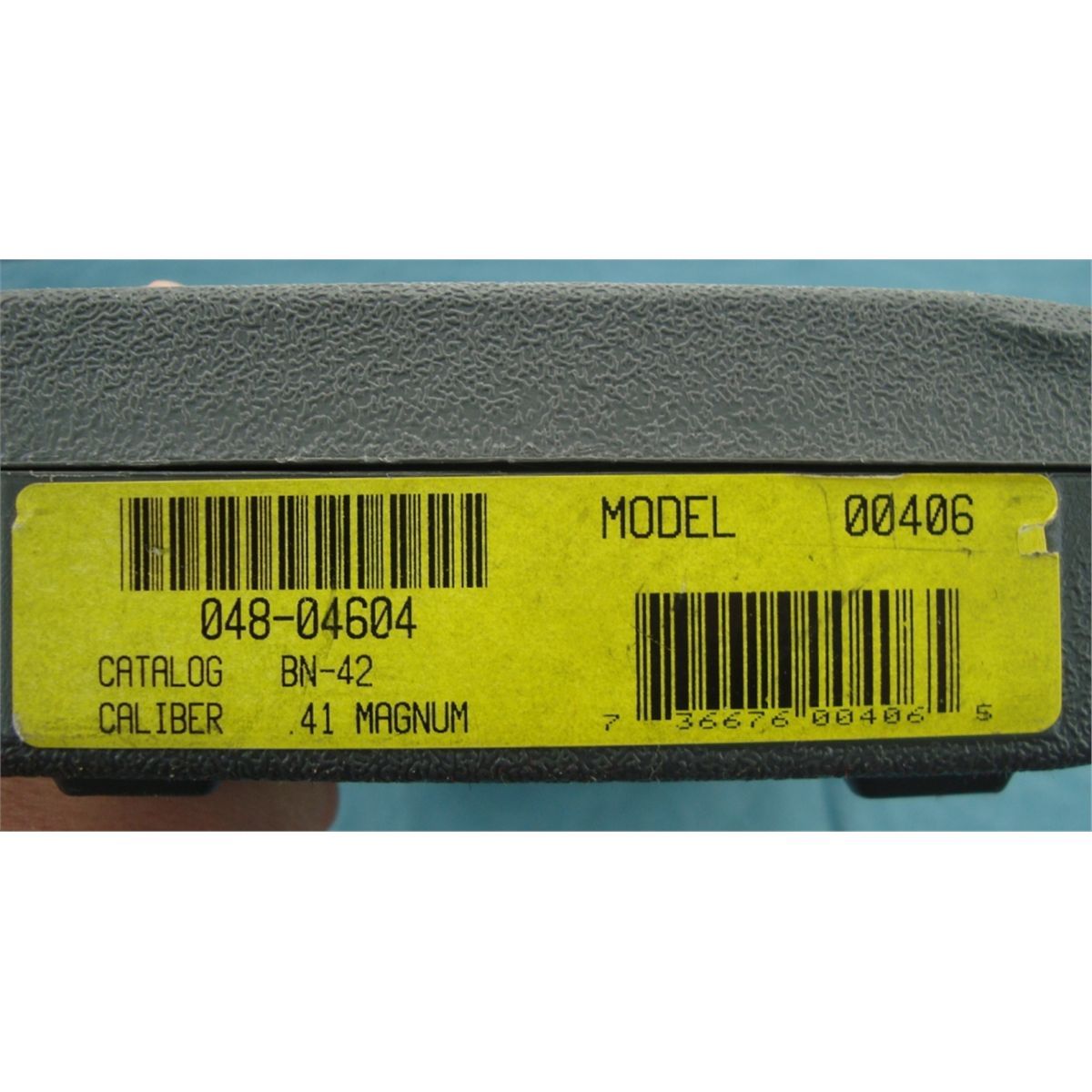 #48-04604; 41 Mag. w/6 1/2" bbl. Blued metal finish w/walnut Ruger grips. Very nice overall condition w/only some marks from light use. Complete in plastic original box.