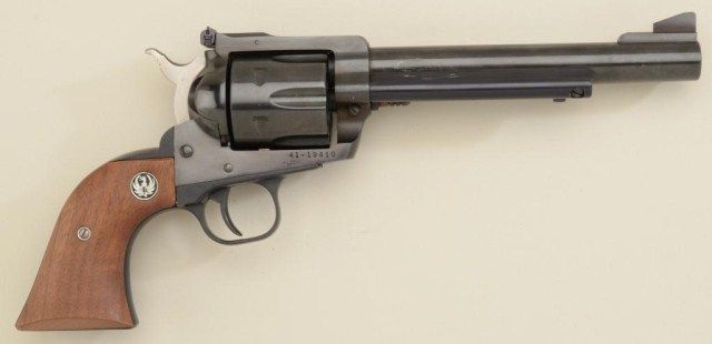 Ruger New Model Blackhawk .41 S.A. revolver with 7-1/2” barrel, #41-19-416; fine to near excellent used condition, 97-99% finish, slight scratches; transfer bar. Est.: $250-$500.