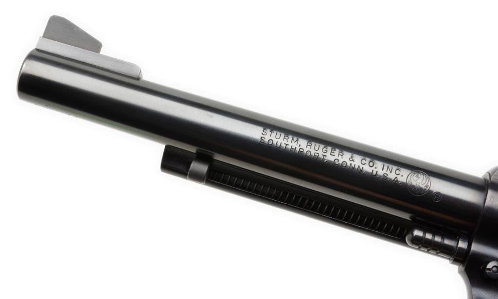 *Ruger New Model Blackhawk revolver, .357 Magnum cal., serial #33-73135. The pistol is in overall excellent condition showing slight muzzle wear and faint drag line on the cylinder. The pistol retains nearly all of its original blued finish with a 6 ½” barrel sporting a ramp front and adjustable rear sights. The smooth wood Ruger medallion grips are in overall very good condition showing only slight handling marks. The bore is very good, the action crisp and the markings are sharp on this desirable Ruger. Est.: $300-$600.