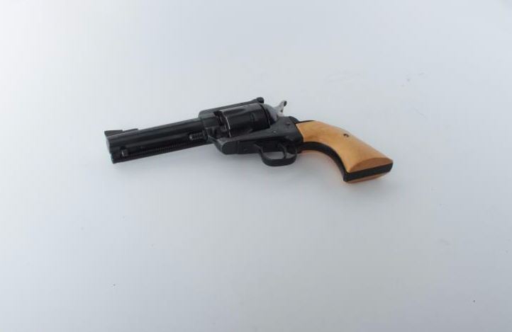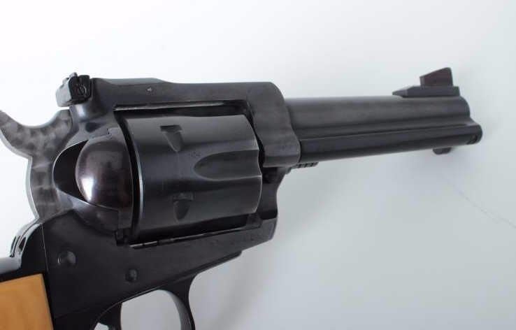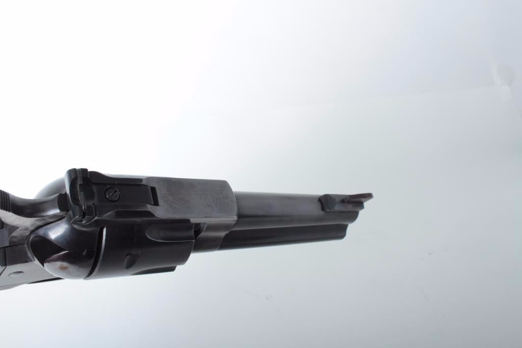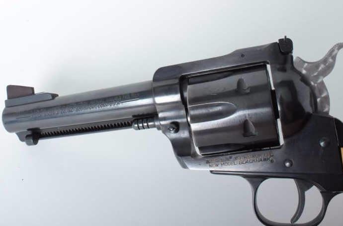 Ruger New Model Blackhawk single action revolver, .357 Magnum caliber, 4.75” barrel, blued finish, simulated ivory grips, S/N 37-01822, overall near fine condition showing the majority of its original finish, jeweled hammer and tuned action, fine bore, fine grips. (Modern/PPT). Est.: $300-$600.