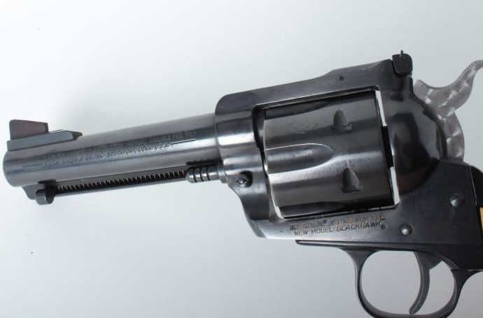 Magnum caliber, 4.75” barrel, blued finish, simulated ivory grips, S/N 37-01822, overall near fine condition showing the majority of its original finish, jeweled hammer and tuned action, fine bore, fine grips. (Modern/PPT). Est.: $300-$600.