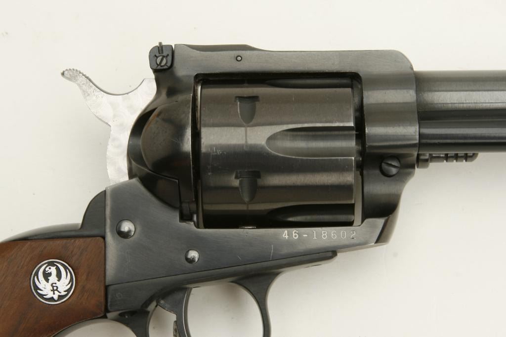 caliber, 7.5” barrel, blued finish, jeweled hammer, wood medallion grips, S/N 46-18602, in overall like new condition. (Modern/PPT). Est.: $300-$600.