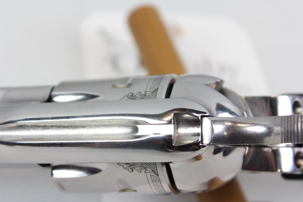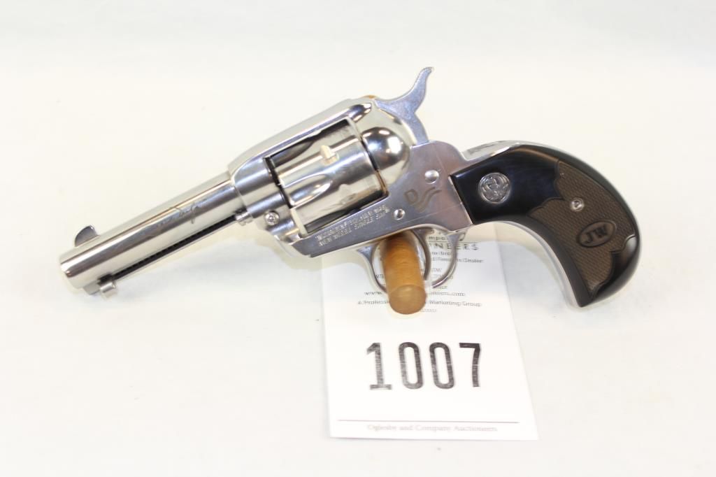 John Wayne Enterprises Licensed Limited Edition.3-3/4" Barrel,Stainless Steel, Reported to be the last time Ruger will chamber a firearm in the .32H&R Magnum caliber. Ebony engraved, John Wayne's signature and the "Red River D" brand grace the gun.