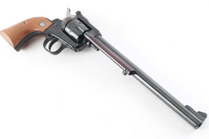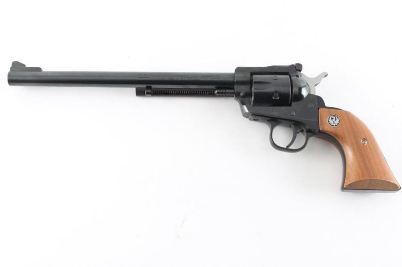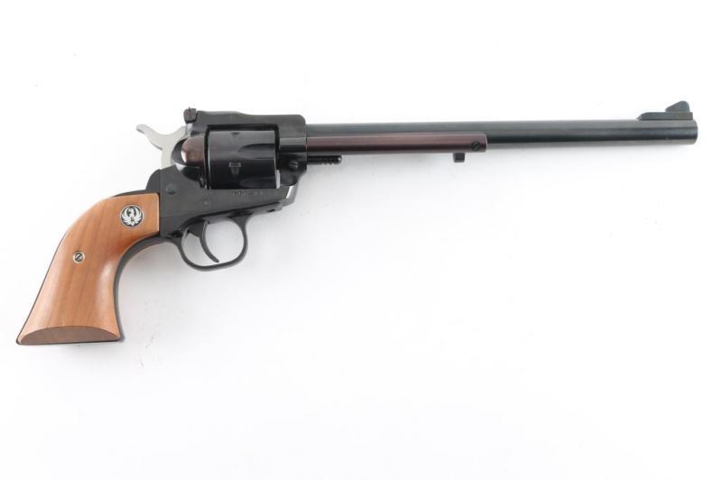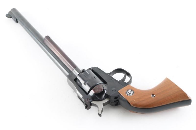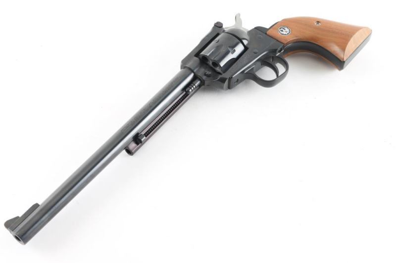 Sn: 650-11286. Revolver. Single-Action. 6-rd capacity. 9.5" barrel with serrated ramp front, and micro-click rear sights. Transfer bar. Blued metal finish. Smooth walnut grips with Ruger Medallions. Bore appears very good but dirty. Cylinders are very good, but dirty. Action is smooth/tight. Blued finish is about 98% with minor scratches. Grips are very good . NRA Condition-Near Excellent. Modern Firearm.