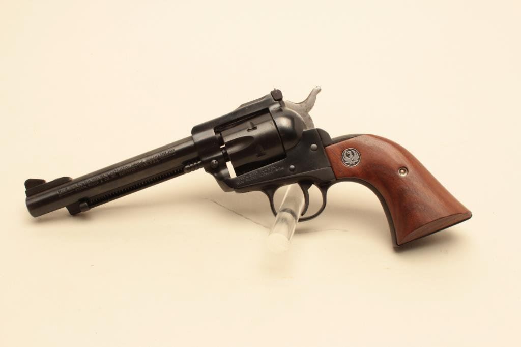 blued finish, smooth wood medallion grips, one extra cylinder, S/N 260-35210, in like new condition showing little handling, with yellow and black cardboard factory box and cardboard sleeve numbered to this gun. (Modern/PPT). Est.: $250-$500.