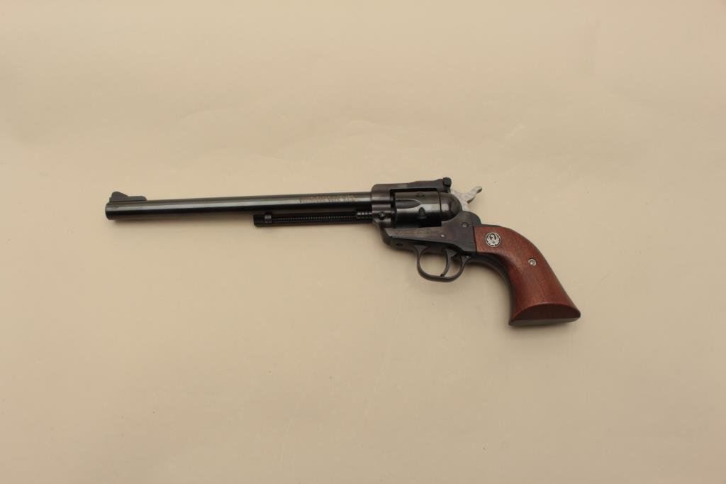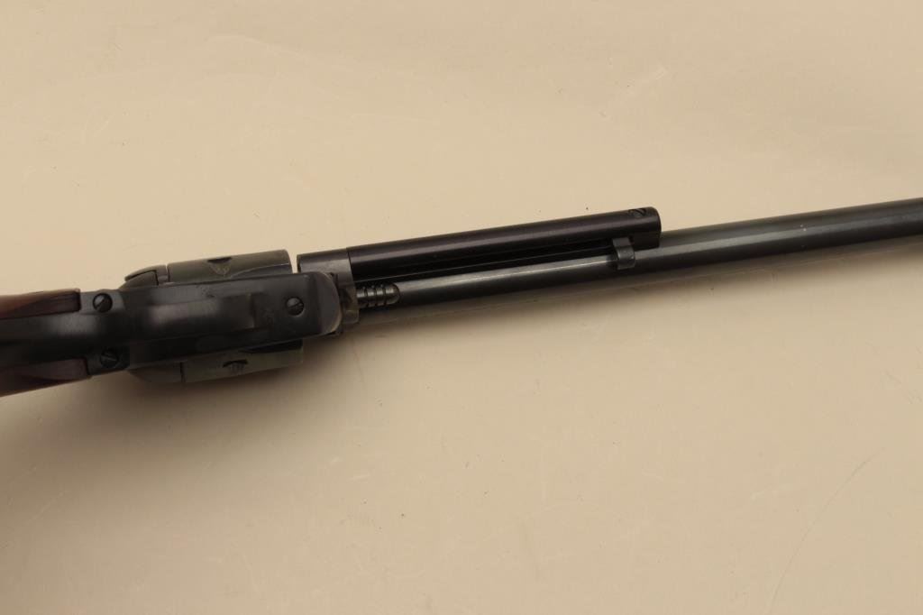 blued finish, wood medallion grips, S/N 64-94258, in overall fine condition with crisp action and markings, fine grips and majority of original blue remaining. .22 Win. Mag Cylinder is included (Modern/PPT). Est.: $175-$300.