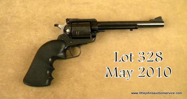 Ruger New Model Super Blackhawk single action revolver, .44 Magnum cal., 7-1/2” barrel, black finish, Hogue finger groove hard rubber grips, #81-47119. This gun is in overall excellent condition showing approx. 98% + original finish,bore should clean to very good, crisp action and markings, very good grips. Est.: $250-$500.