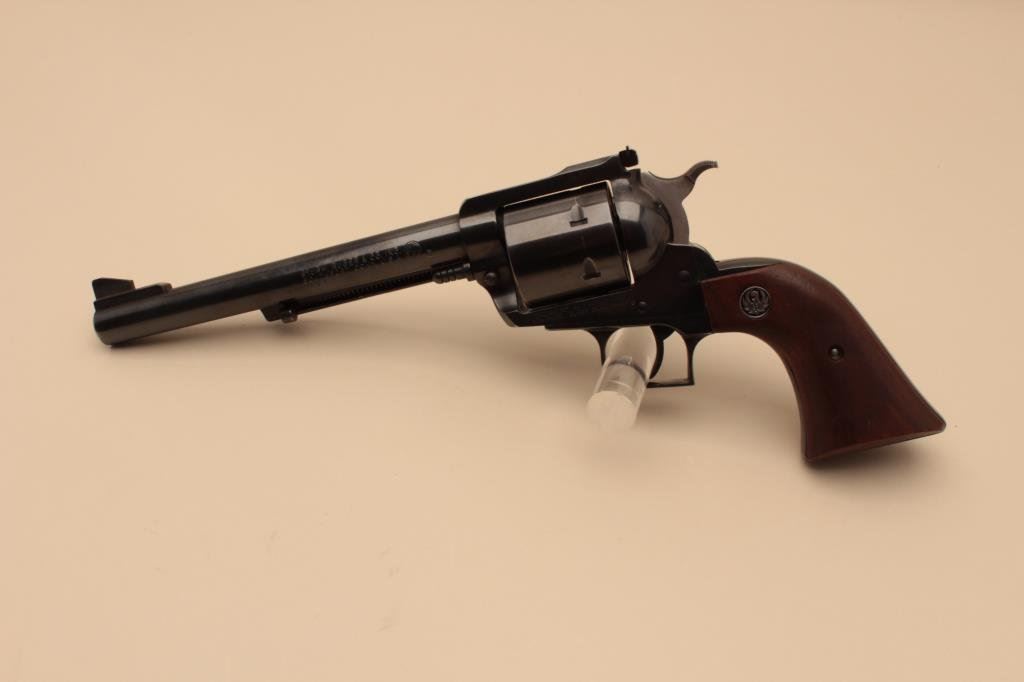 caliber, 7.5” barrel, blued finish, smooth wood medallion grips, S/N 82-21198, in overall very good to fine condition with majority of original blued finish, very good bore, crisp action and markings, fine grips. (Modern/PPT). Est.: $350-$700.