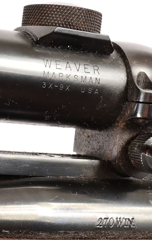 Weaver Marksman 3x-9x scope, 26" barrel. Serial 13035941, left side barrel stamped, "Made In The 200th Year of American Liberty".
