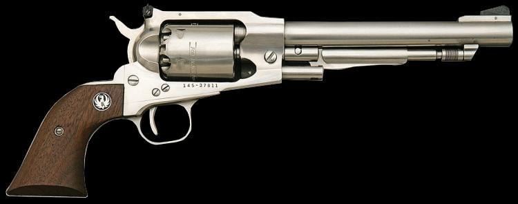Description: serial #145-37811, .45 cal., 7 1/2" barrel with an excellent bore. The stainless surfaces rate near excellent with light scratches and a turn ring on the cylinder. The smooth factory walnut grips with silver Ruger Phoenix medallions rate very good to excellent with a light ding on the left panel by the butt. This Old Army features a factory fully adjustable black blade rear sight and black ramp front sight. This gun appears to have seen light use. (86520-2016) {ANTIQUE} [Richard "Stretch" Kennedy Collection]