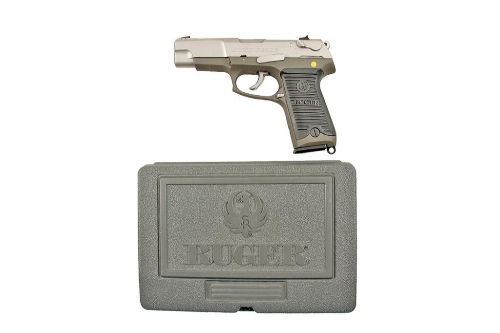 Ruger P89DC Cal 9mm SN:309-16687 Double action semi auto high cap pistol. Stainless slide with grey polymer frame, black grooved stocks, 4 1/2" barrel with three white dot adjustable sights, good bore and action. Condition: Excellent in original greyDouble action semi auto high cap pistol. Stainless slide with grey polymer frame, black grooved stocks, 4 1/2" barrel with three white dot adjustable sights, good bore and action. Condition: Excellent in original grey carry casewith extra magazine but no instructions.