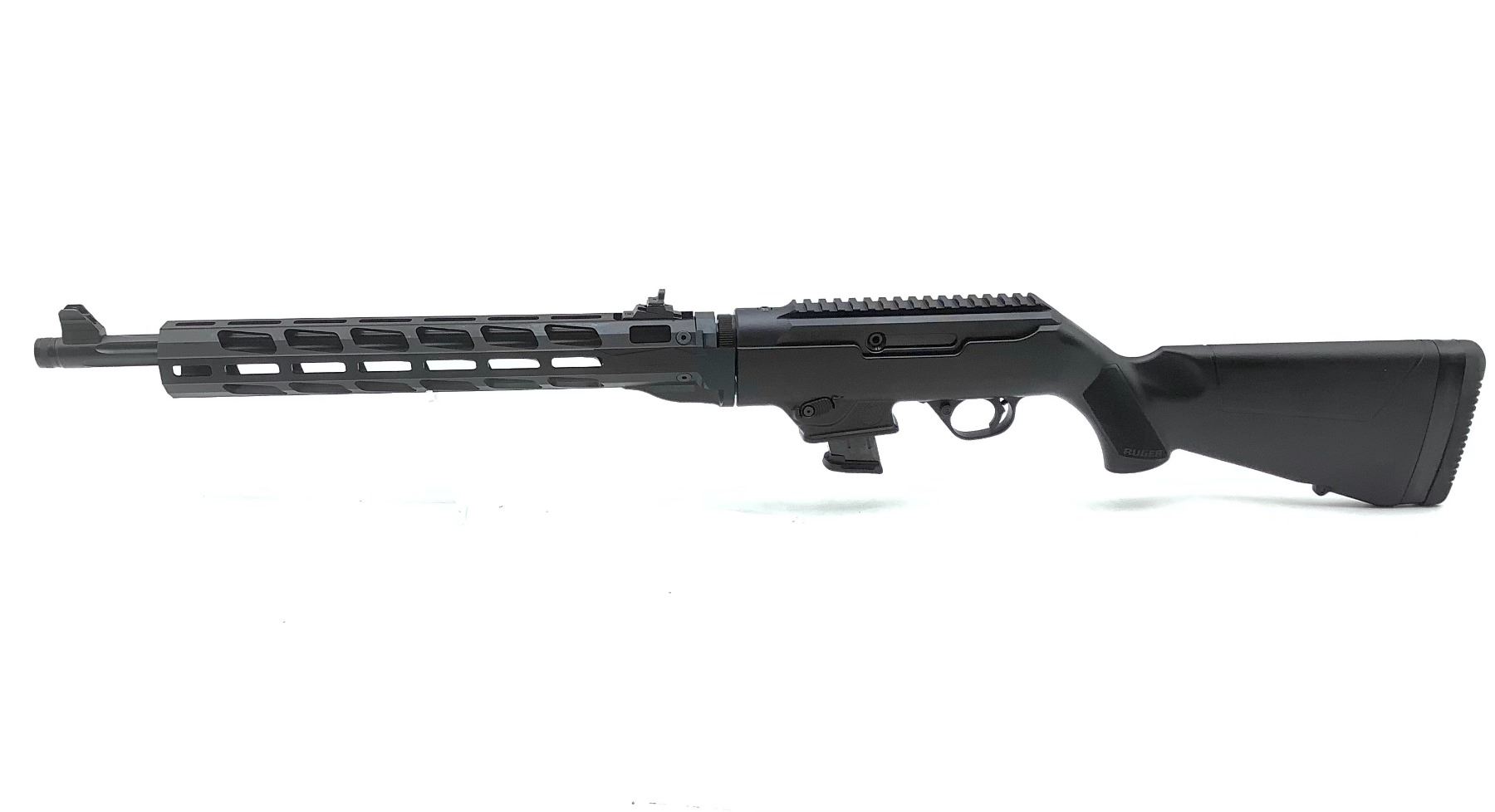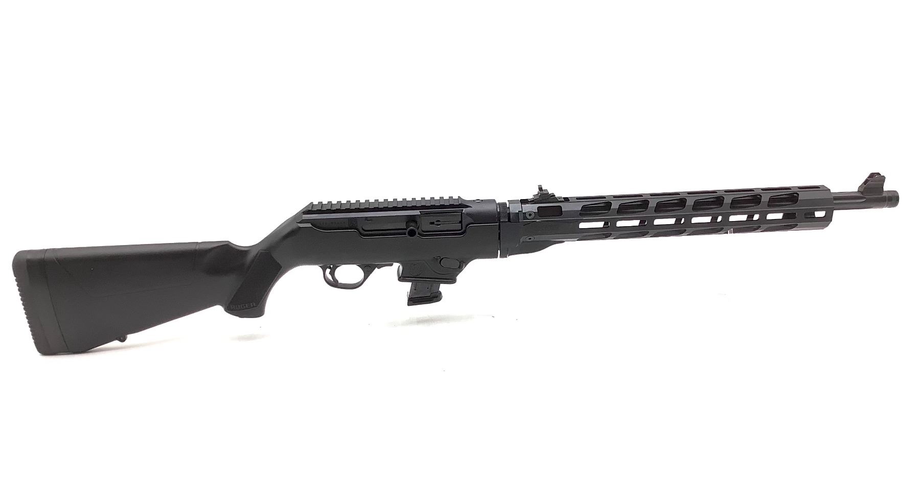 Ruger PC Carbine Semi Auto Rifle 9mm 18.6" Barrel Takedown, New. Threaded barrel, detachable magazine (includes adapter to use Glock magazines). Adjustable ghost ring rear aperture sight and non-glare, protected blade front sight. This is a non-restricted firearm.