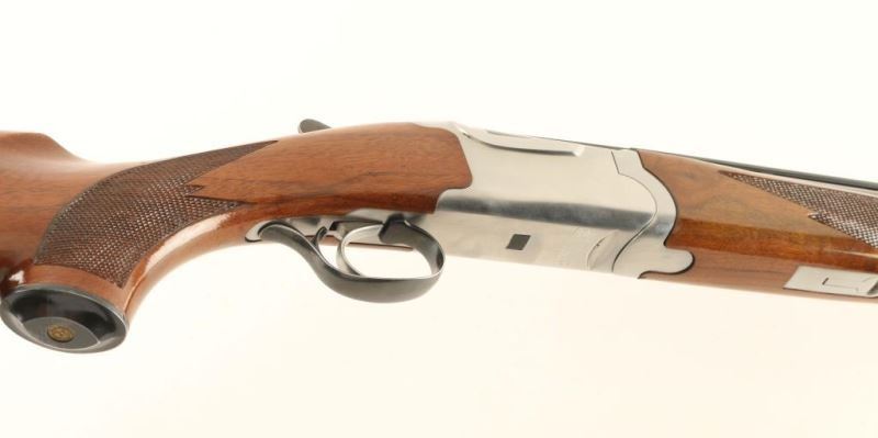Quality American made over/under double barrel box-lock shotgun chambered for 12 gauge shells, circa 1993. Features blued 30" barrels with 3" chambers, ventilated rib, removable / chokes & selective automatic ejectors, brass bead sights, smooth single trigger, sliding tang safety/barrel selector, stainless steel receiver, serrated top lever, checkered walnut forend with inlayed Ruger medallion and pistol grip shoulder stock with metal grip cap, aftermarket recoil pad & 14.5" LOP. Includes a factory cardboard box with manual, lock, choke tool and six additional chokes(3 skeet, 1 full, 1 xfull & 1 modified.) Shotgun exhibits approximately 96% of it's original finish showing scattered handle wear and a small patch of dings on the top of the receiver & top lever. Action is crisp, bores are pristine and the refinished wood stocks are very good. Condition is NRA very good+++ in box. ***Modern Firearm***