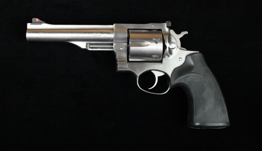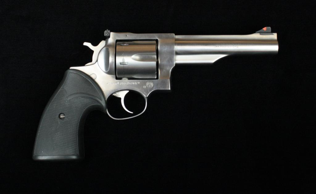 Ruger Redhawk Model DA stainless steel revolver, .44 magnum cal., 5-1/2” barrel. This gun is in overall fine condition and contained in a factory yellow and black cardboard box; fine bore, crisp action, finegrips. Est.: $400-$600.