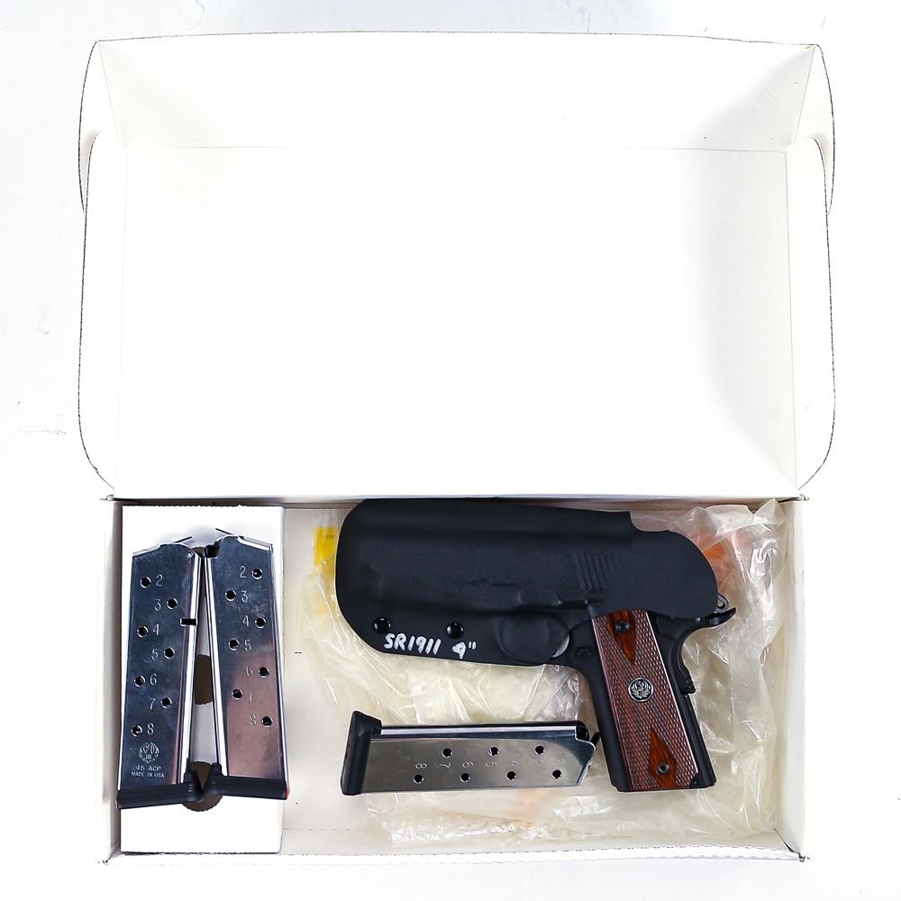 Ruger SR1911 .45acp Pistol with original box, 3x magazines and holster in excellent condition. S/N: 671-95679